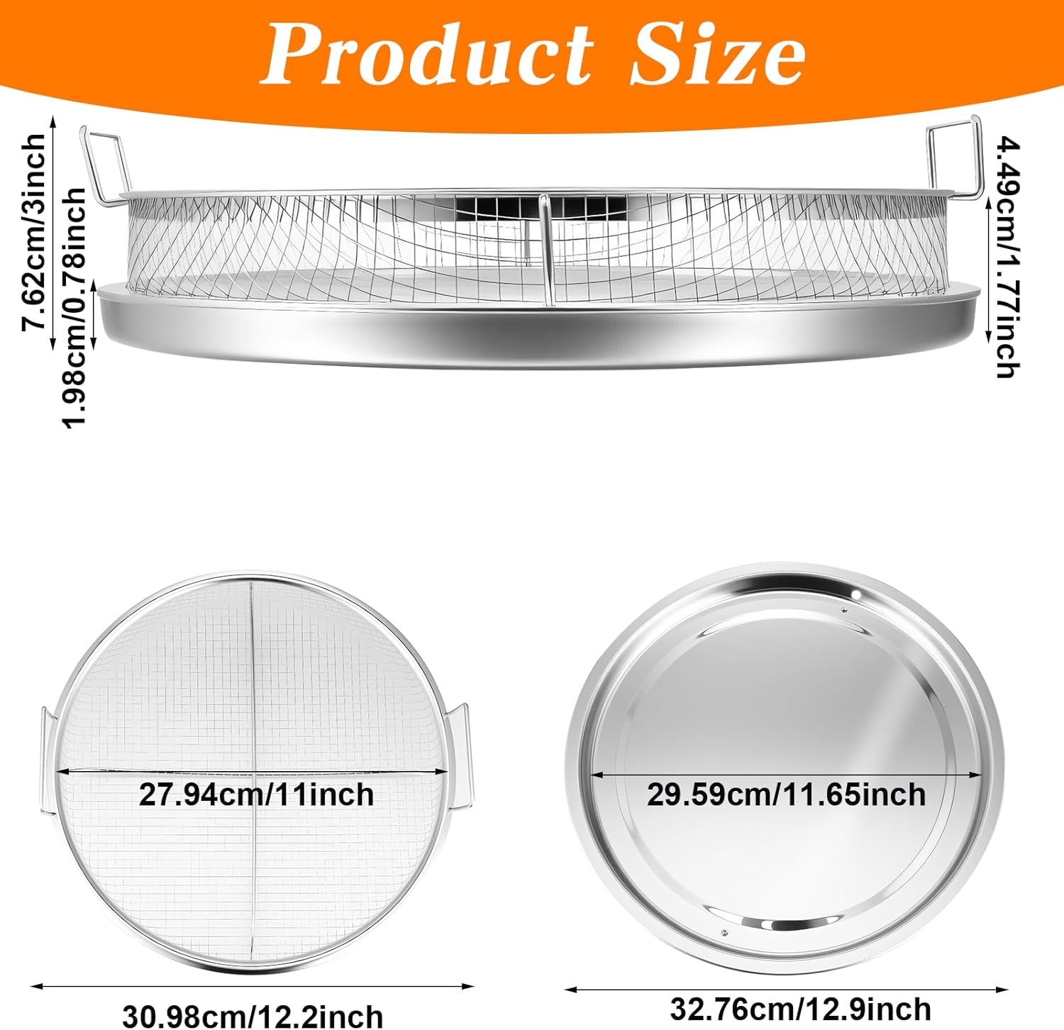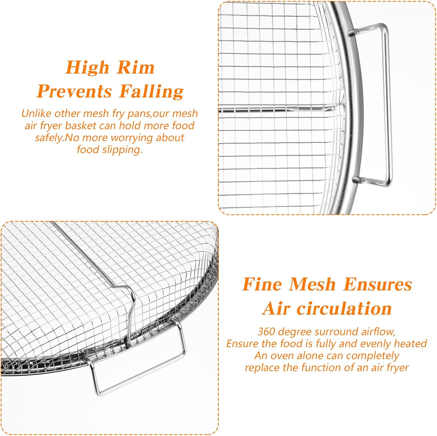 【Design for Air Fryer Oven】Our air fryer tray for oven with perforated design can allow 360° air circulation, excellent heat ventilation, which help heating food more evenly and quickly, making the food tastes crispy and delicious.This air fryer basket for oven is designed to catch all excess oil, you can use less or even no oil while cooking, thus help you take less fat or calories to keep healthy and fit.