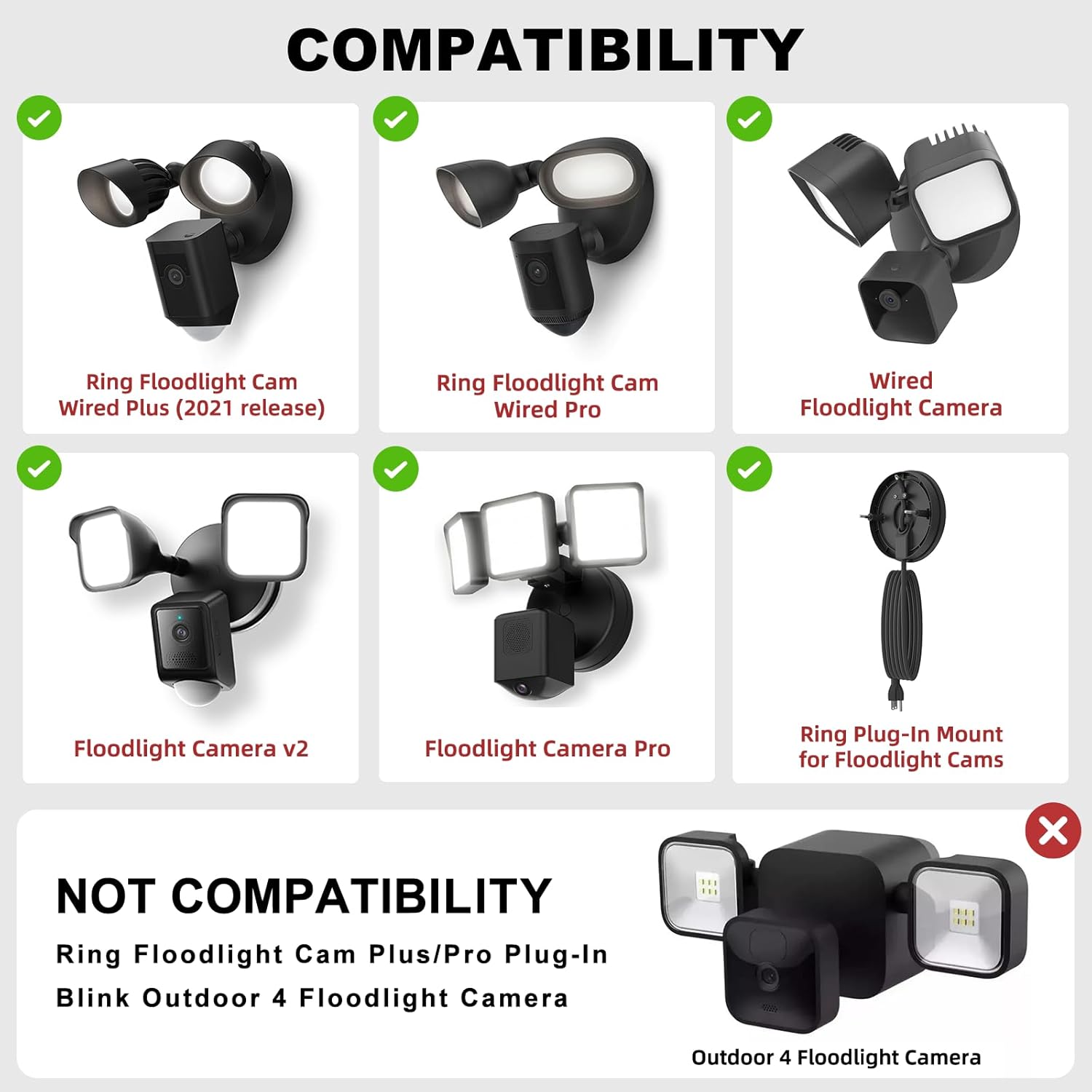 【NOTE】 It’s not compatible with Ring Floodlight Cam Plus/Pro Plug-In, and Blink Outdoor 4 Floodlight Camera