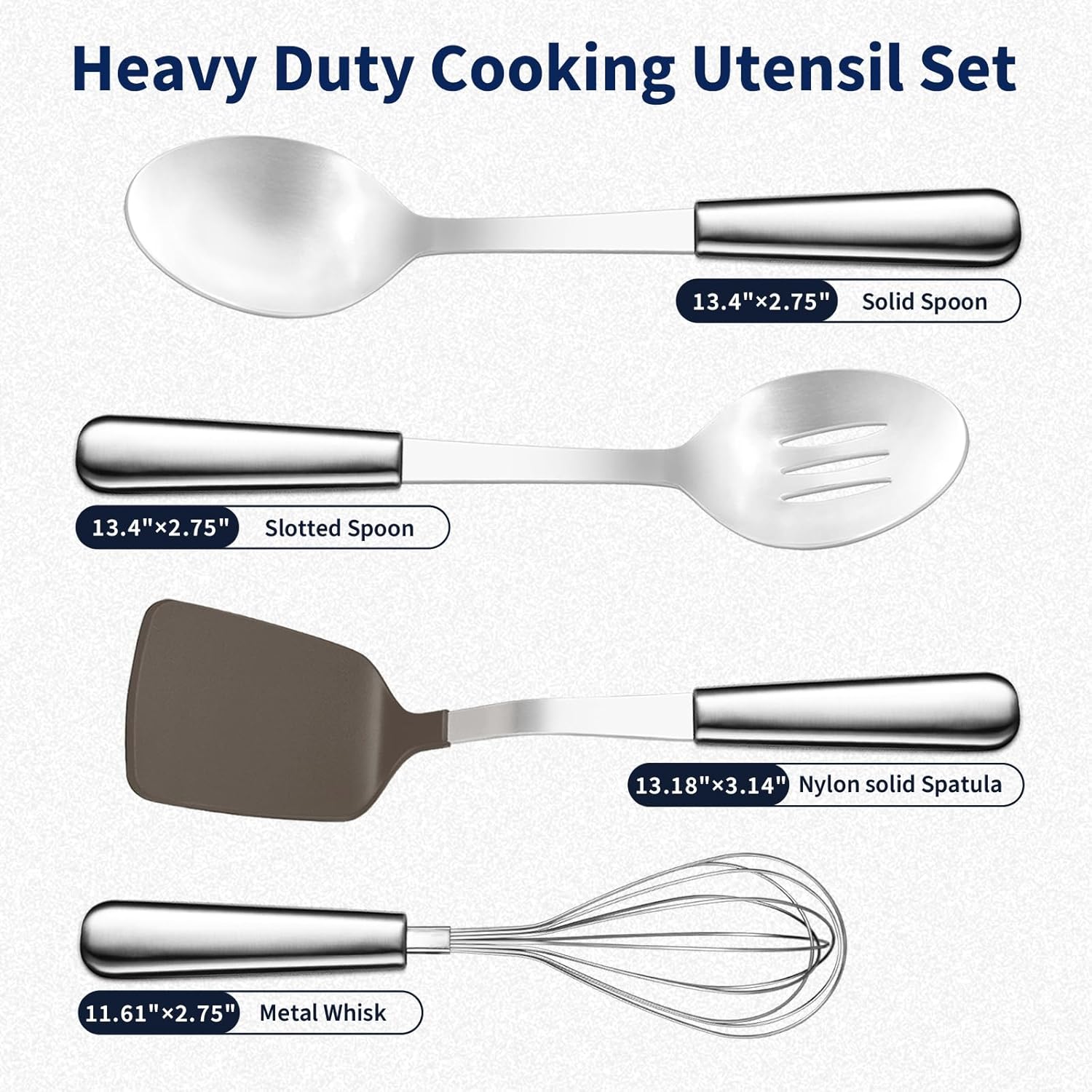 【High Quality 316 Stainless Steel 】Crafted from premium 316 stainless steel and food-grade nylon materials, these utensils guarantee durability and safety during cooking. Unlike flimsy alternatives that may melt or break after a few uses, our utensils are built to last.