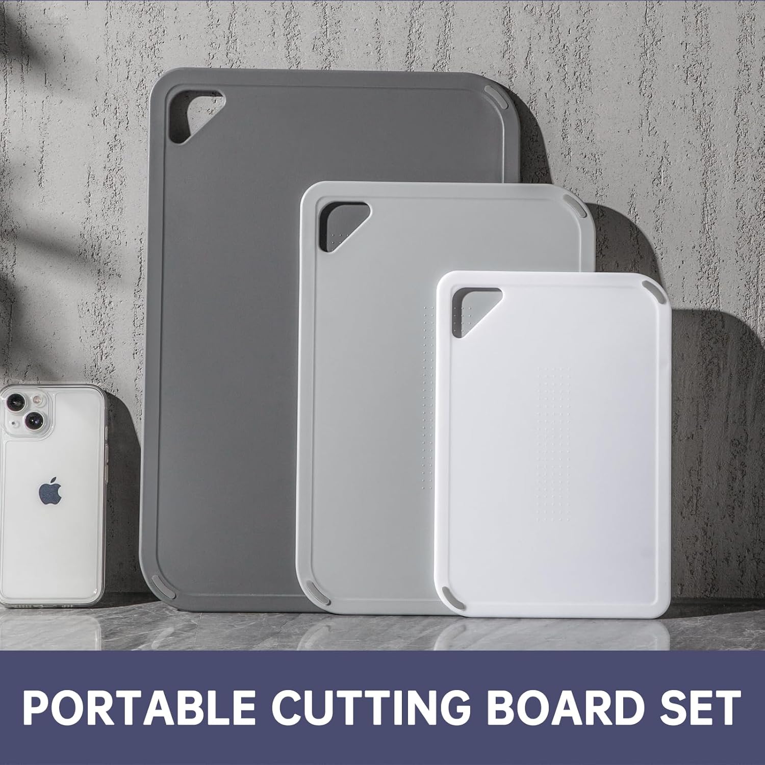 MULTIPLE SCENES, MULTIPLE USES: The THETCHRY non-slip plastic cutting board weighs only 2.3 pounds, and you can easily take it anywhere. Not only can it be used at home, in an apartment or college dorm, you can also take it out, and you can even take it to an RV and use it for picnics and camping with your family. I believe that using this cutting board set will allow you to have a good time!