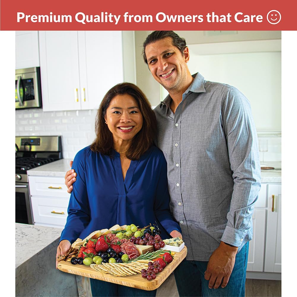 Unlike many other charcuterie boards that crack, splinter, or have rough edges, our charcuterie board set is crafted with premium bamboo and the attention to detail your grandparents would expect.