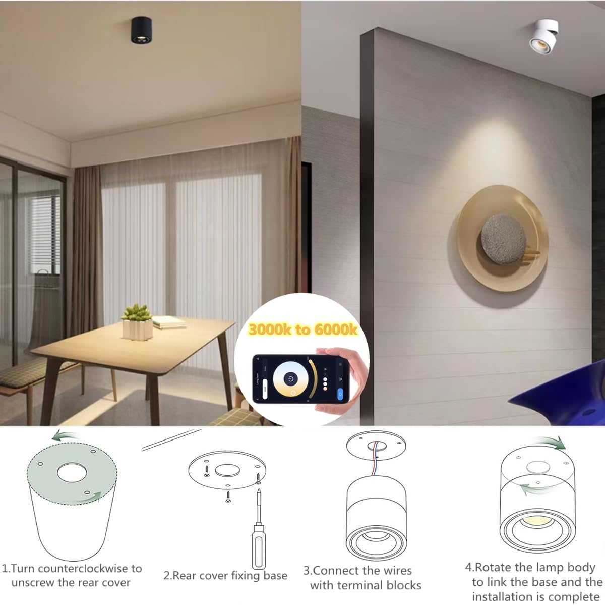 Dimmable ceiling Spotlight blends perfectly with the minimalist design of each living space,360°rotation, up and down 90°,Can be installed on the ceiling or wall,to precisely position the light to the position you need.