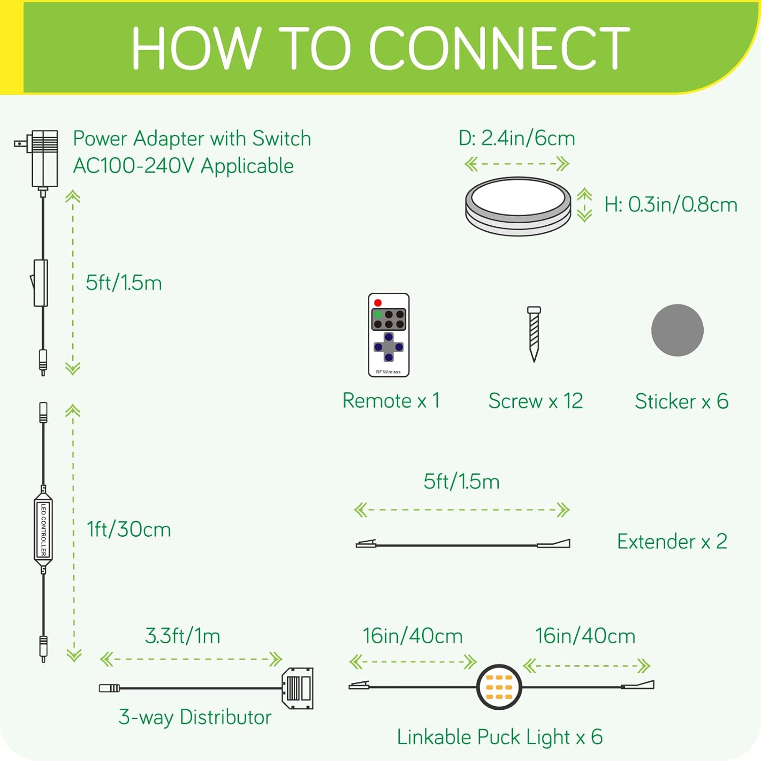 Easy to Install – everything required to complete the installation is included, screws and double-adhesive stickers are optional for mounting the light pucks