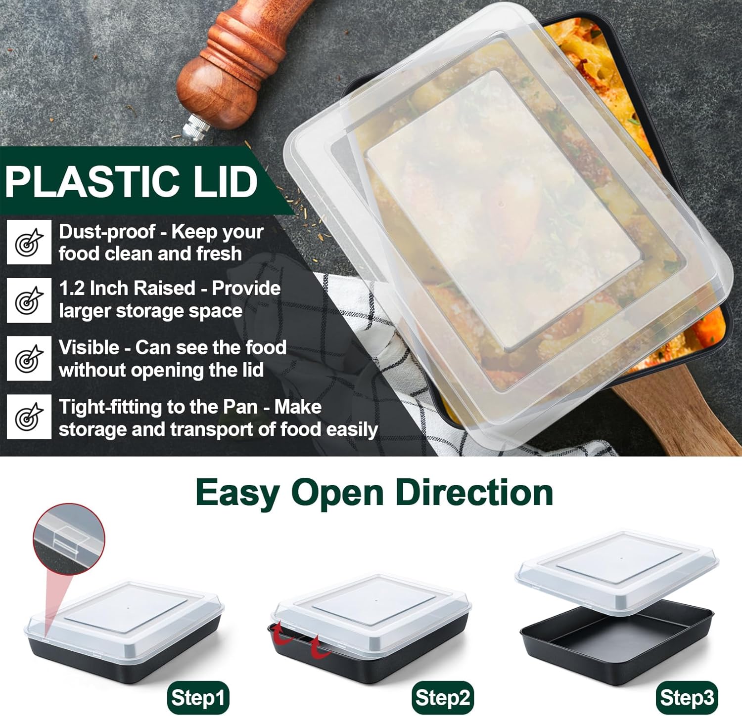 【VERSATILE BAKEWARE SET】Non-stick lasagna pan with plastic lid can meet different using needs, Perfect for roasting meat vegetable, baking brownie, lasagna, or storing food and cookie, Oven and freezer safe, Good to use at home or take out for containing food in a picnic and camping, A wonderful present for yourself or other people