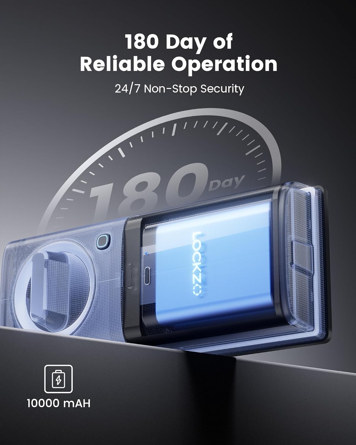 【6-Month Battery& Weatherproof】10,000mAh battery lasts 180 days per charge. IP65-rated against dust, rain, and extreme temperatures.