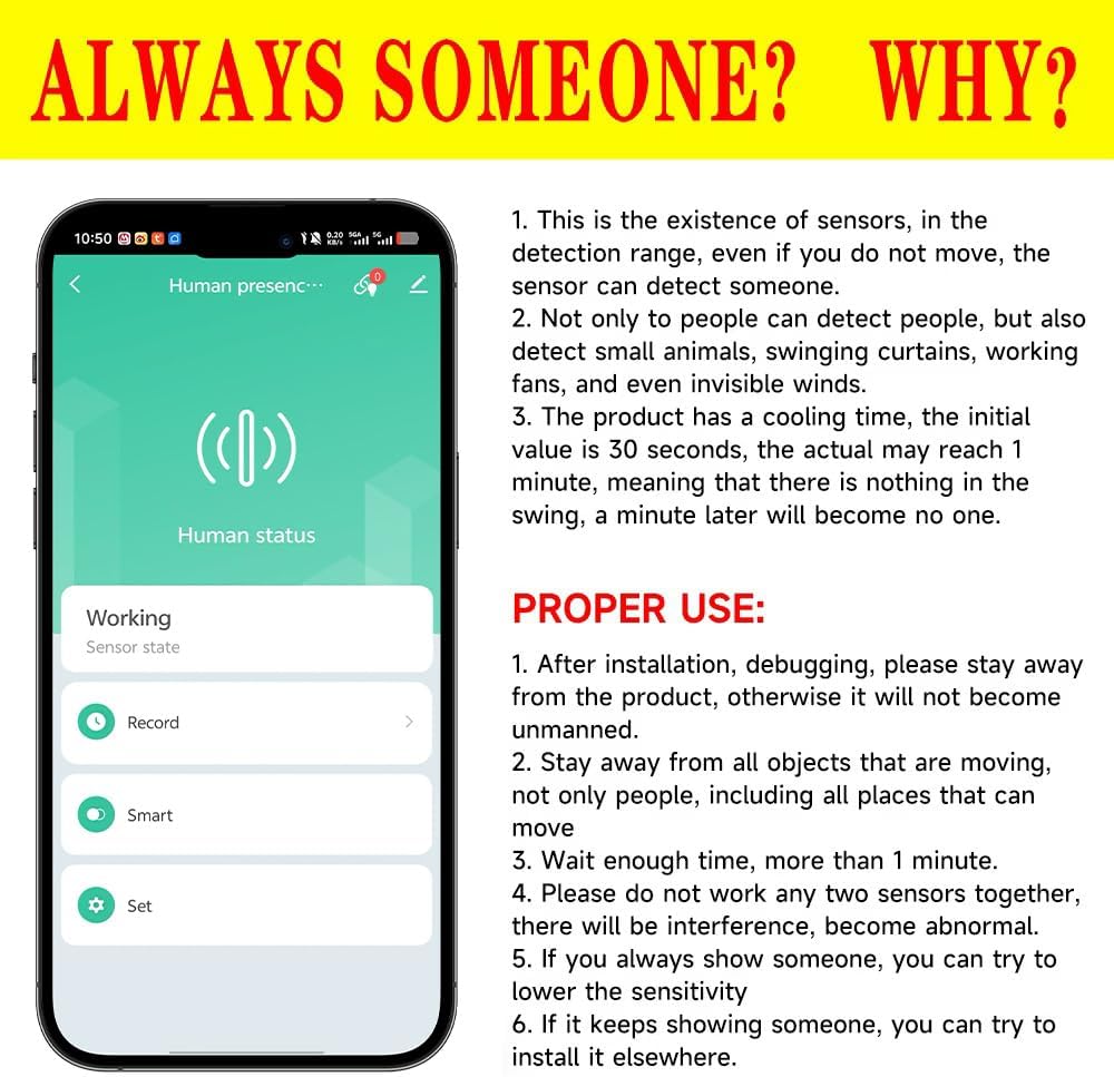 【Wifi Connected,No Hub Required】This Presence Sensor doesn’t Requires any Gateway, with 2.4 GHz Wi-Fi network connection and compatible with Alexa,Google assistant,Tuya Smart and Smart Life APP Please Note: Can’t support Smartthings,IFTTT,Homekit