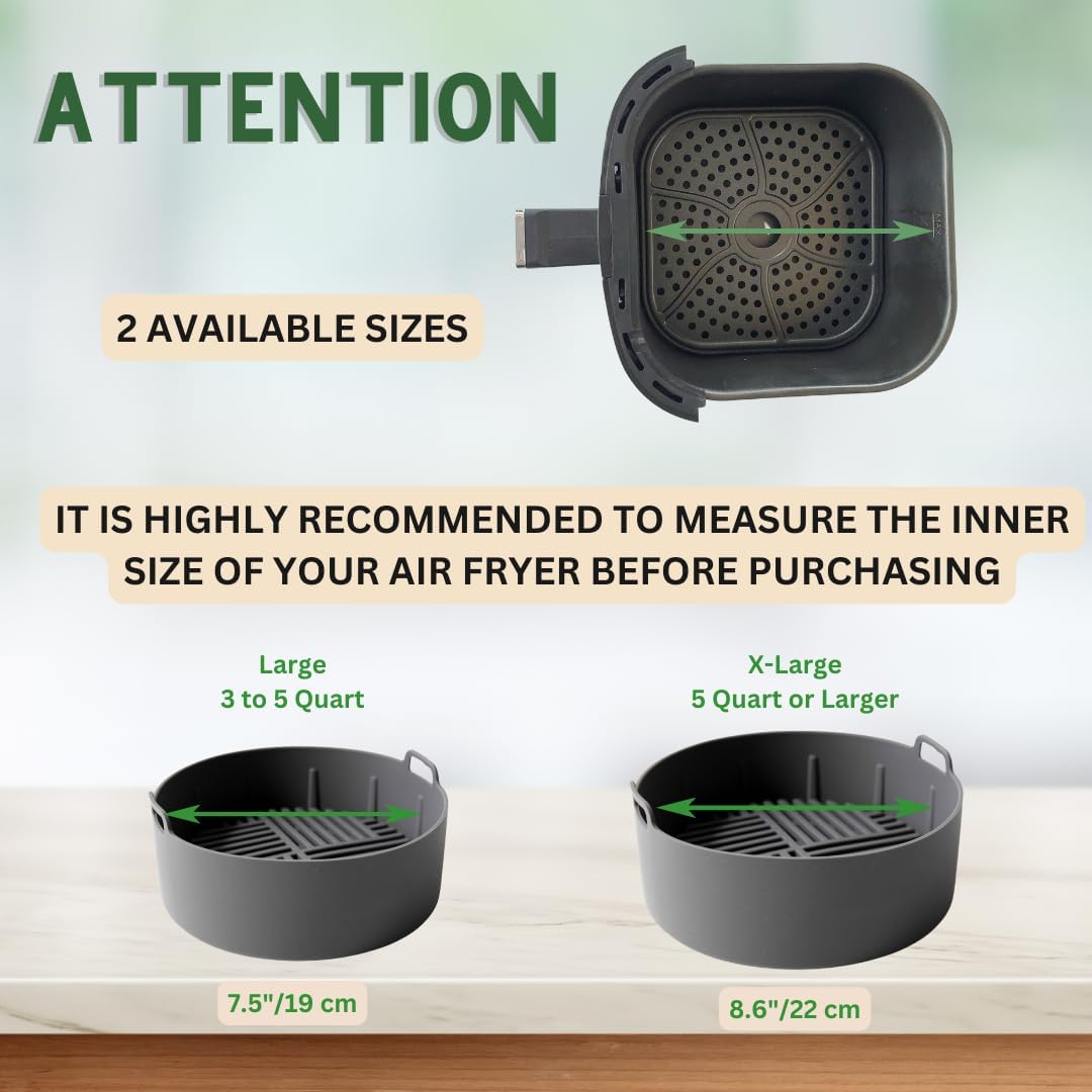 ⚙️ Precision Fit & Healthy cooking: Engineered to fit your appliances like a glove, our round silicone air fryer liners are compatible with a wide range of air fryers and Instant Pots. Also, crafted from food-grade silicone, they are completely safe for cooking. It is highly recommended to measure the inner air fryer tray size before buying.