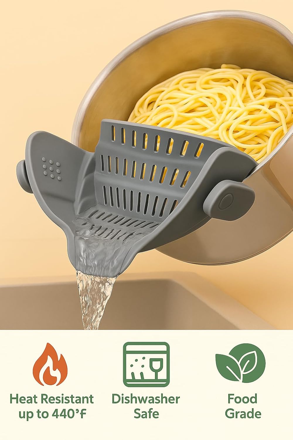 HEAT RESISTANT: Made from durable food-grade silicone that withstands temperatures up to 446°F (230°C), perfect for straining hot foods and liquids