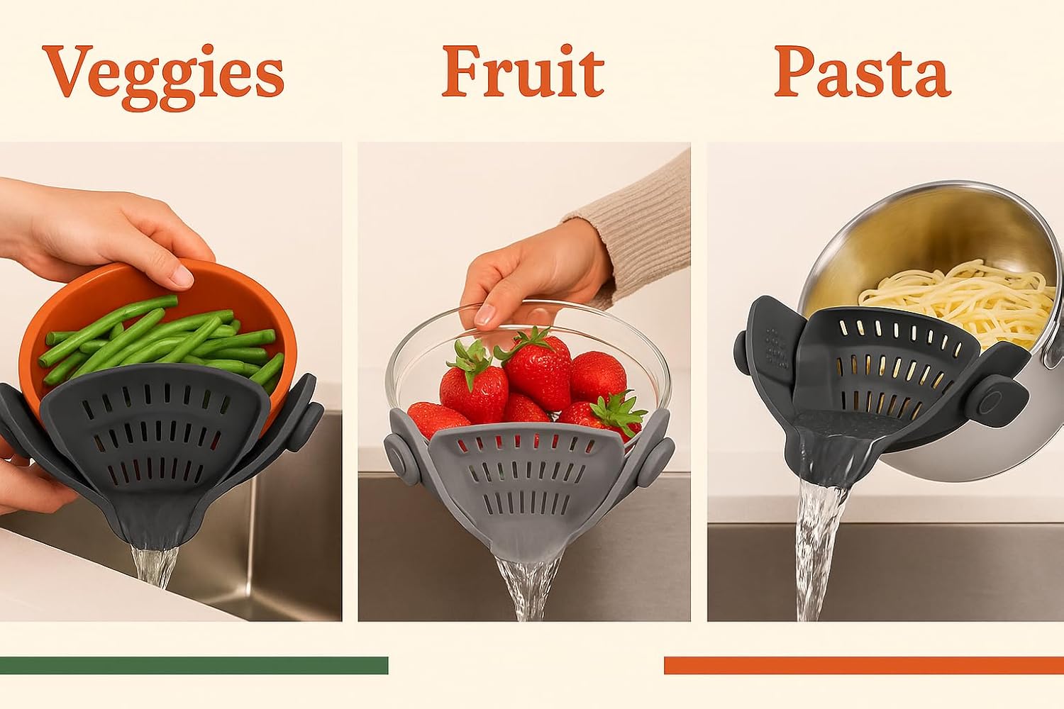 SPACE SAVING: Compact clip-on design takes minimal storage space compared to traditional colanders, ideal for small kitchens and organized storage