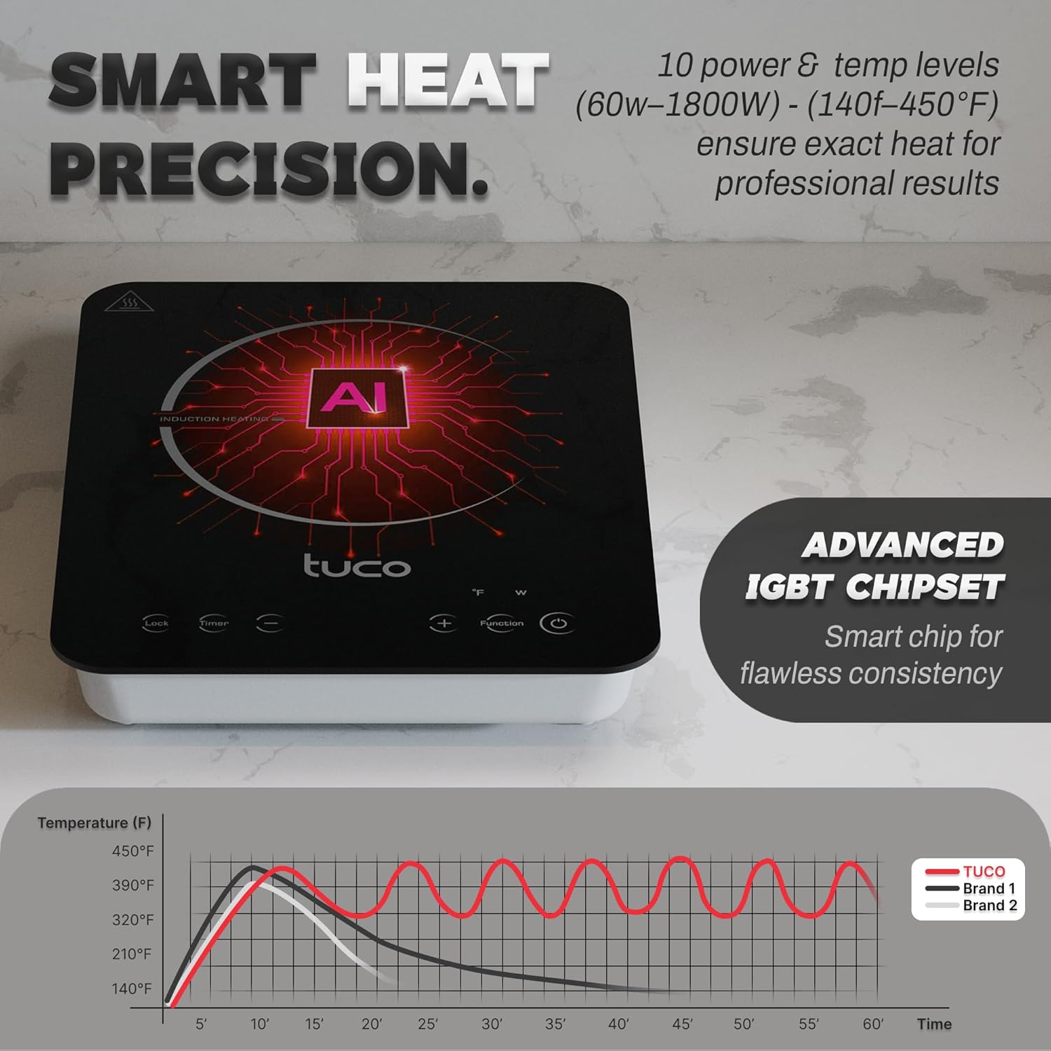 TUCO Portable Induction Cooktop Burner Hot Plate Electric Stove with Shatter-Proof Ceramic Glass, LCD Sensor Touch, ETL Certified, 20 Cooking Modes, 1800 Watts