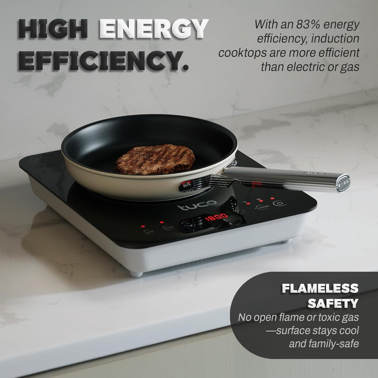⚡ FASTER HEATING & ENERGY SAVINGS: The TUCO Portable Induction Cooktop achieves up to 83% energy efficiency, outperforming gas and electric stoves. It heats cookware directly using electromagnetic fields, reducing heat loss and ensuring rapid heat-up with less energy waste.