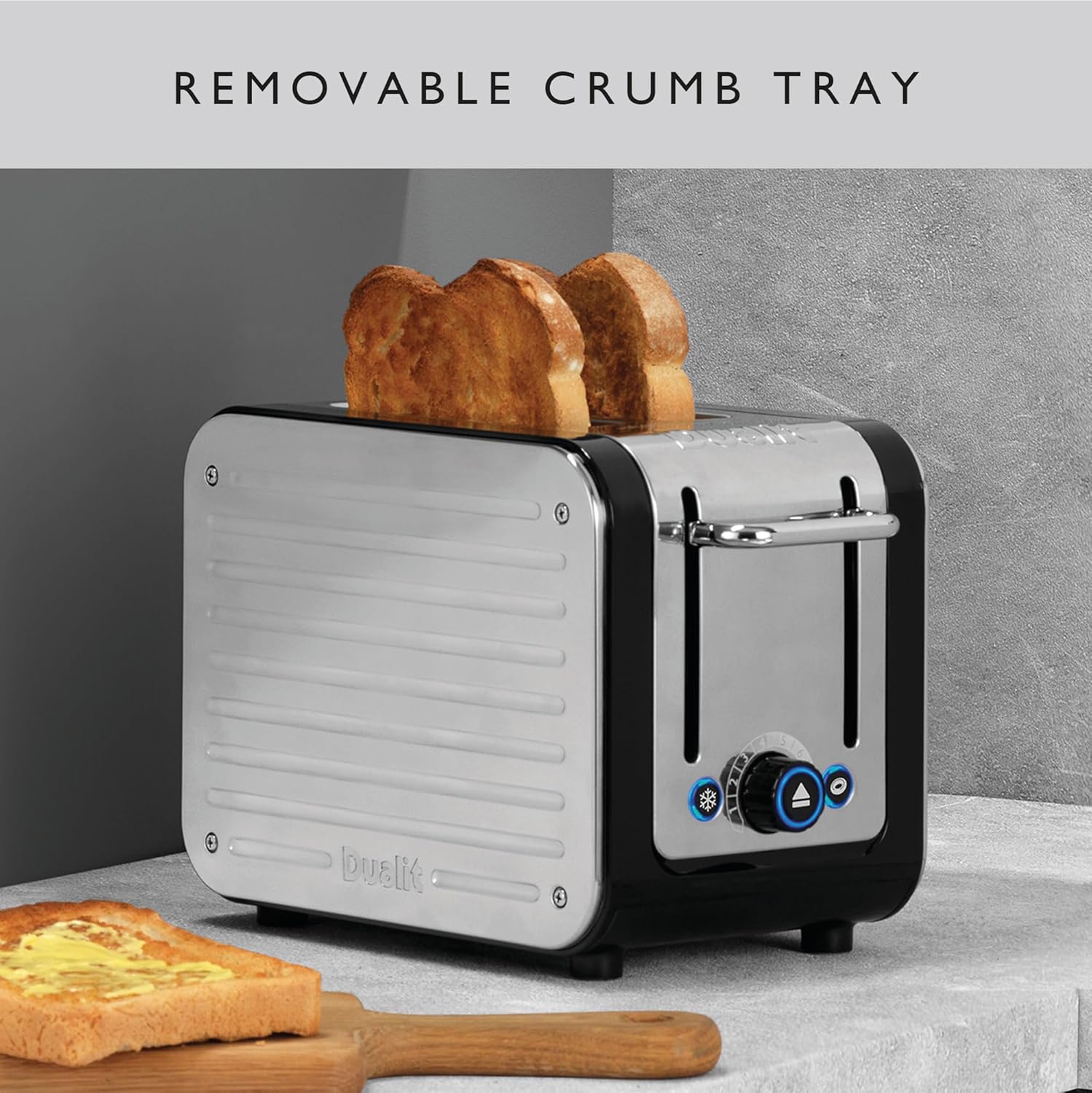 Dualit’s patented Peek and Pop function makes burnt toast a thing of the past. Lift the bread with the ejector lever while toasting to check your toast, then drop it back down. All without interrupting the toast cycle, giving you greater browning control.