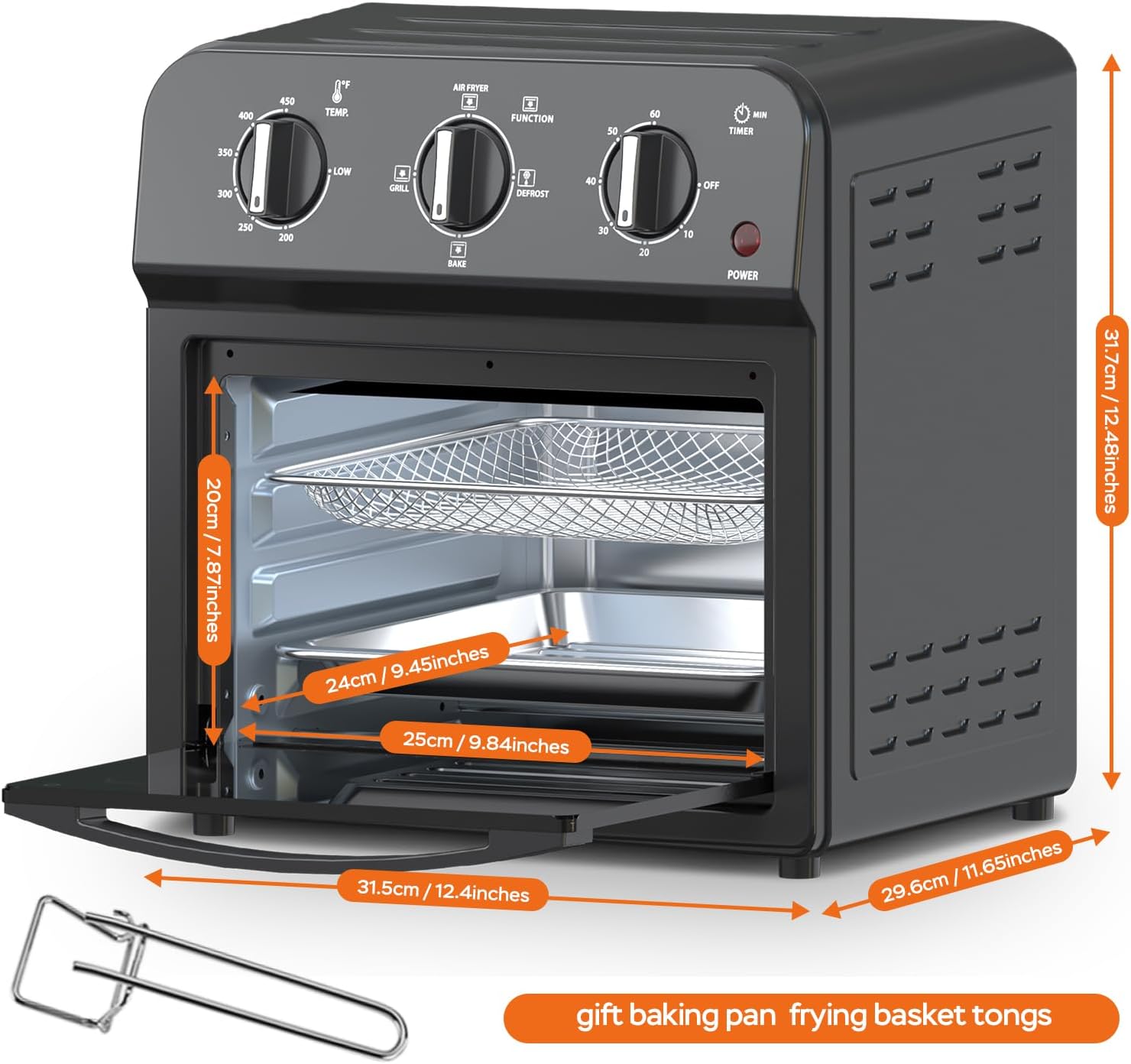 PlumChef 13 Quart 4 Slices Air Fryer Convection Toaster Oven, 1500W, Multifunction Oven for Roast, Bake, Grill, Broil, Toast,Black