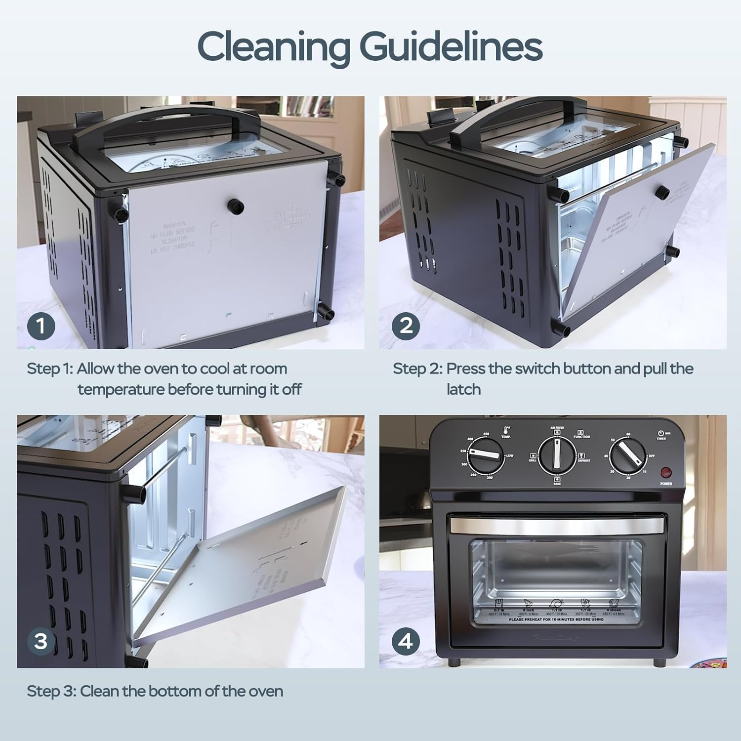 Effortless Maintenance: Designed with user convenience in mind, this oven is easy to maintain. The smooth, easy to pull-down built-in crumb tray can effectively captures debris, preventing oil stains and residue from adhering to the inner walls. Transforms post-meal cleanup into a quick and effortless task, saving you both time and effort while keeping your oven in good condition.