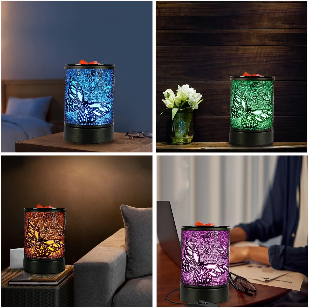 BUTTERFLY DESIGN:Enaroma electric wax warmer is black colour butterfly pattern ,Look like butterflies are flying among the flowers,Led 7colors nightlight , Reliable heating and easy to clean and use silicone tray,This oil burner is great décor for home, office,Yoga and also a good christmas wax warmer for friends.
