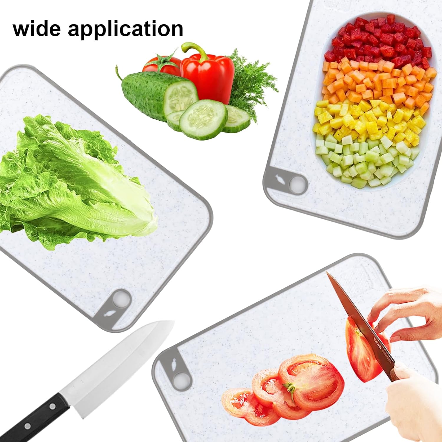 Superb material: the cutting board set is made of outstanding reusable material, easy to clean, eco-friendly, not easy to break, the surface is gentle, scratch resistant, won’t chip or peel, sturdy and durable for long term use.
