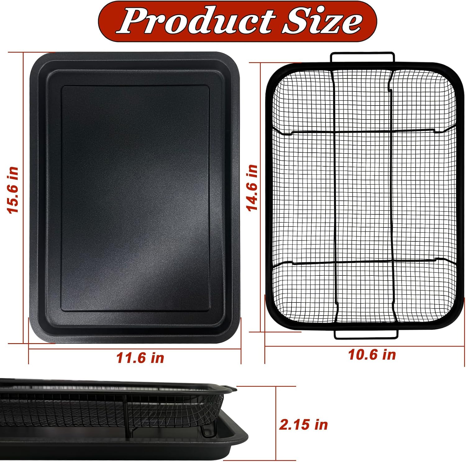 Air Fryer Pans:The stainless steel air frying basket is suitable for most ovens; after cooking, you can easily place the air fryer basket and tray set in the dishwasher for effortless cleaning, saving time and effort, or wash them by hand