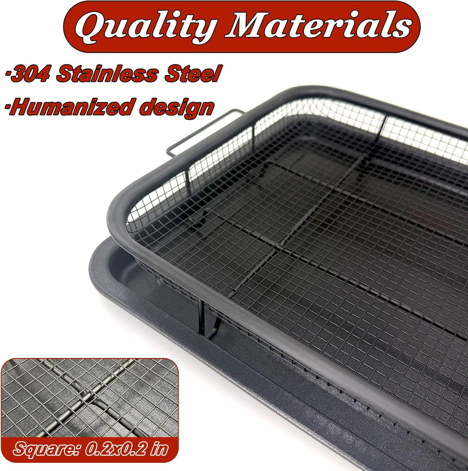 Oven Air Fryer Pans: The stainless steel baking tray and air frying basket are made of food-grade stainless steel with a fine polishing production process; non-toxic, odorless, heat-resistant, and durable. No chemicals are released during high-temperature baking