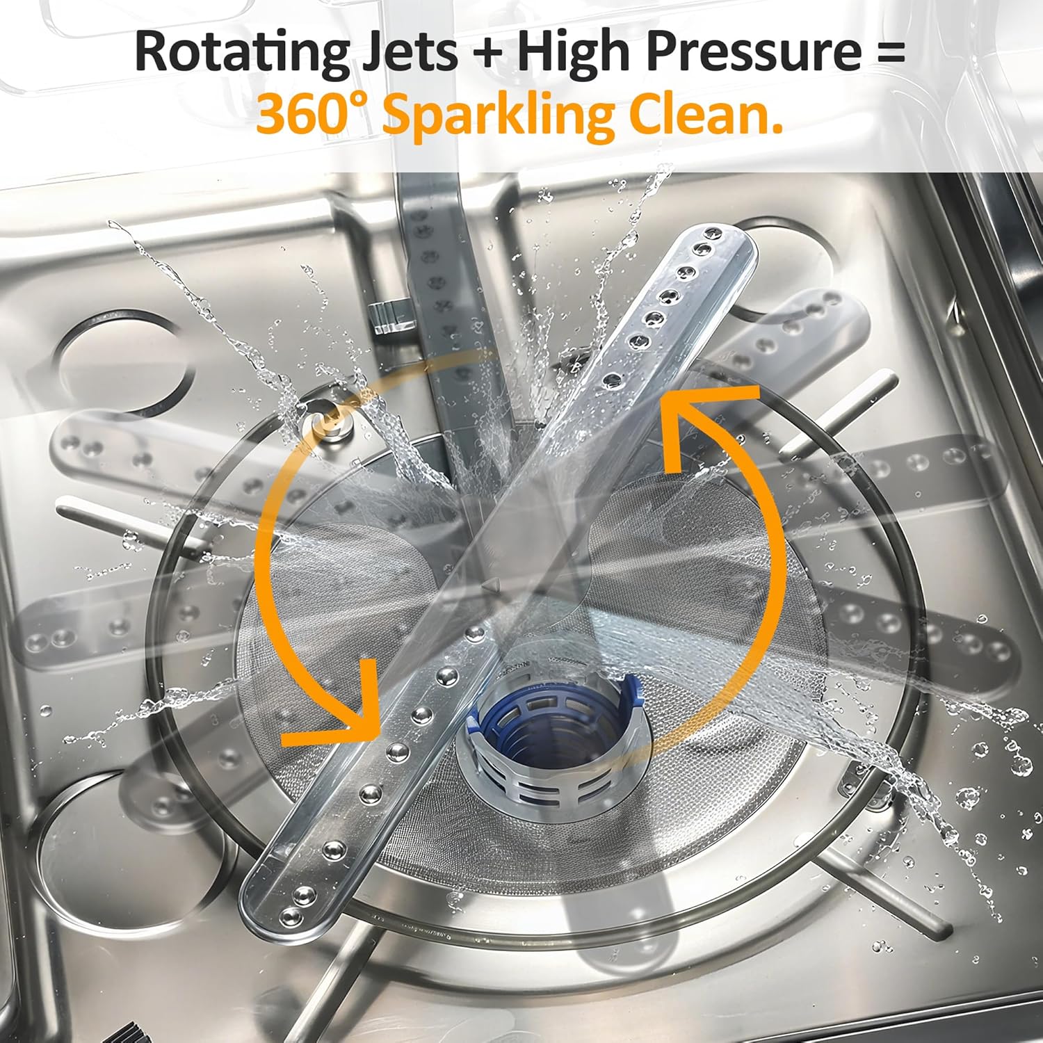 Fit All Your Dishes in One Load: This 24-inch built-in dishwasher holds 14–16 place settings. Adjustable racks and a removable cutlery basket make it easy to load plates, pots, pans, and oversized items without hassle.