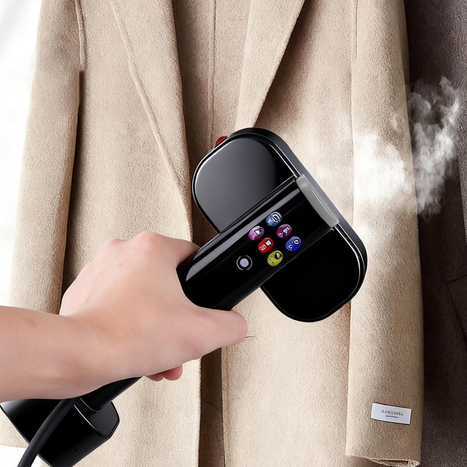 【3-Level Steam Adjustment】This portable garment steamer features a ceramic soleplate and LCD touchscreen with 3 steam intensity settings. It offers both dry and wet ironing modes to meet diverse needs, suitable for chiffon, silk, wool, cotton, nylon, linen, organza, denim, and more.