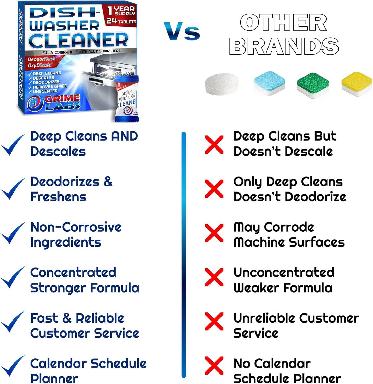 Dishwasher Cleaner Tablets – Thoroughly deep cleans all internal surfaces including stainless dishwasher steel tub and machine plastic parts, including water pump, filter and pipes. Fully compatible with all dishwashers including LG, Whirlpool, Samsung, Bosch, Kitchenaid, Kenmore, Maytag, Frigidaire, GE and others