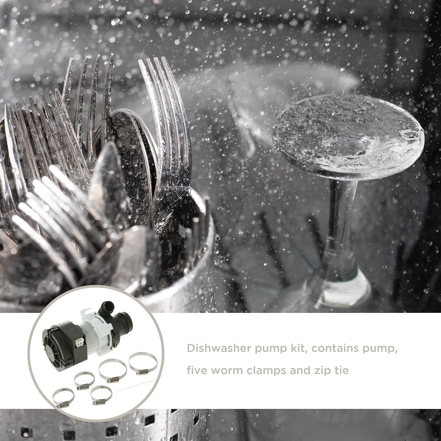 Customers find the dishwasher pump assembly works perfectly and fits perfectly in their appliances. They appreciate its good price and find it easy to install.