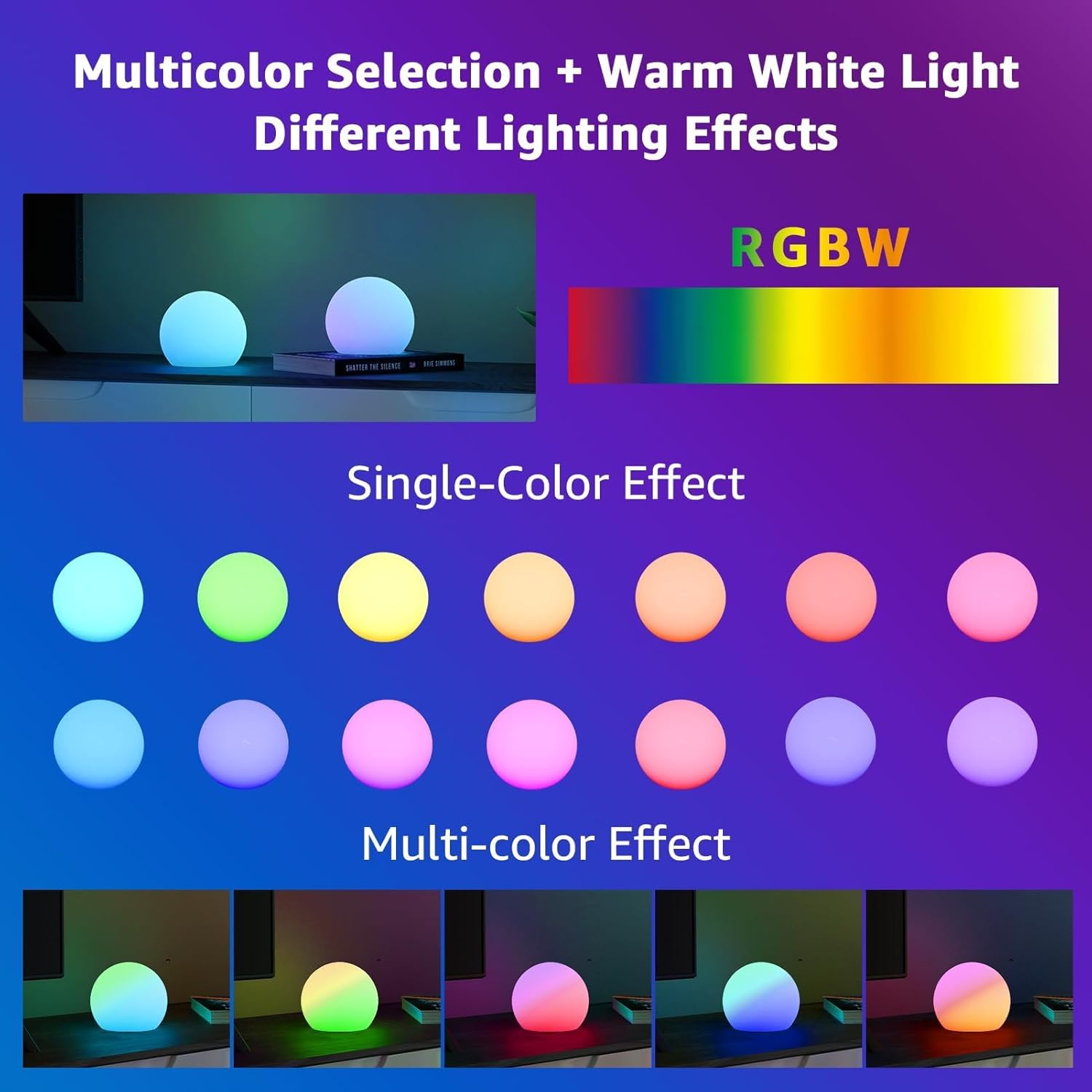 Multi-FUNCTION&CREATING ATMOSPHERE:The most fun RGB color changing LED ball mood light, DIY creates an atmosphere and perfectly heals the mood, suitable for bedroom bedside lights, children’s room night lights, game room atmosphere lights, bar KTV and party, indoor and outdoor environment decoration lighting. It is a multifunctional night light. Place it in your favorite