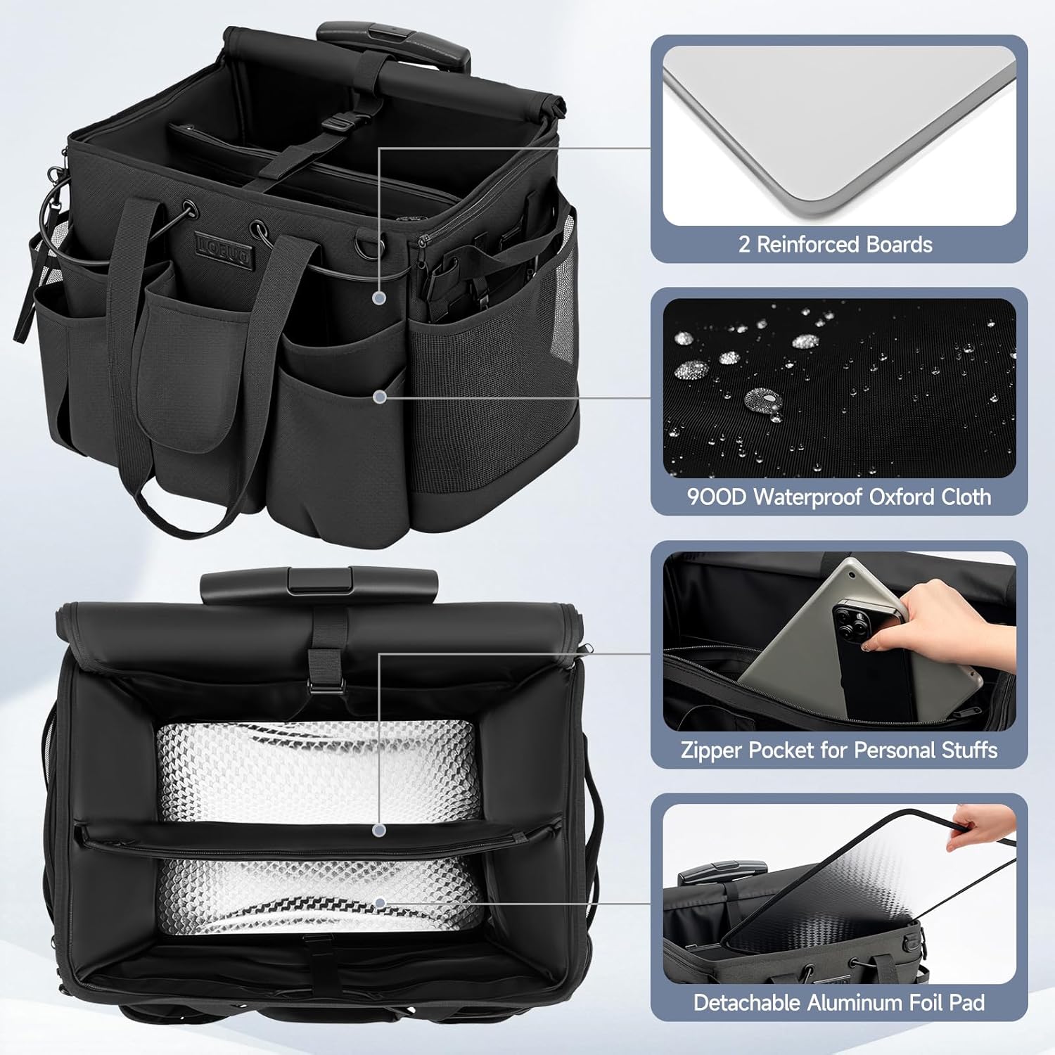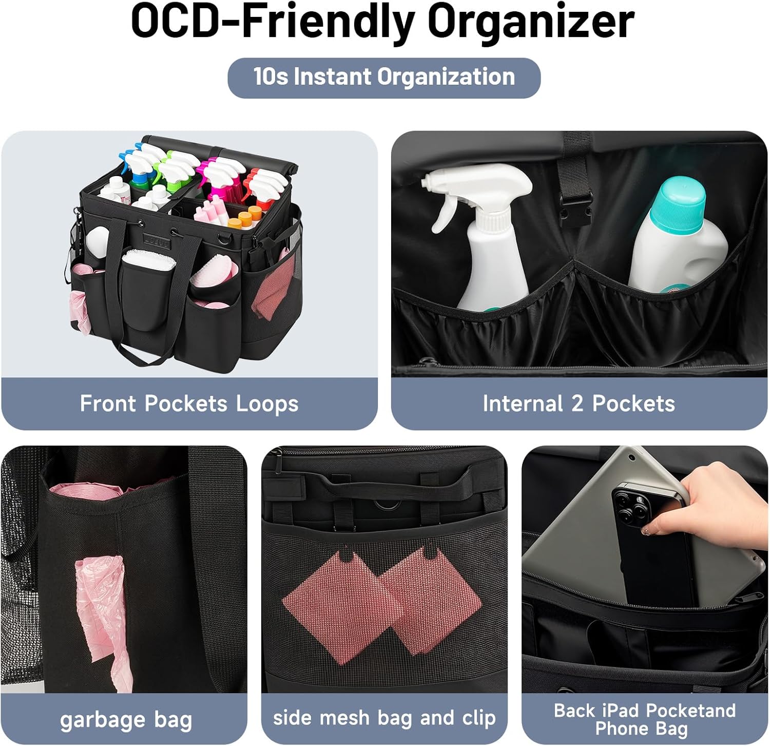 🎒 Durable & Easy to Clean: Made from 900D Oxford cloth with a PVC coating, this bag offers excellent water and scratch resistance. The mesh bottom design, paired with a removable aluminum foil board, makes cleaning simple. Reinforced stitching ensures the bag stands up to daily wear and tear, making it a durable choice that lasts through even the toughest cleaning tasks