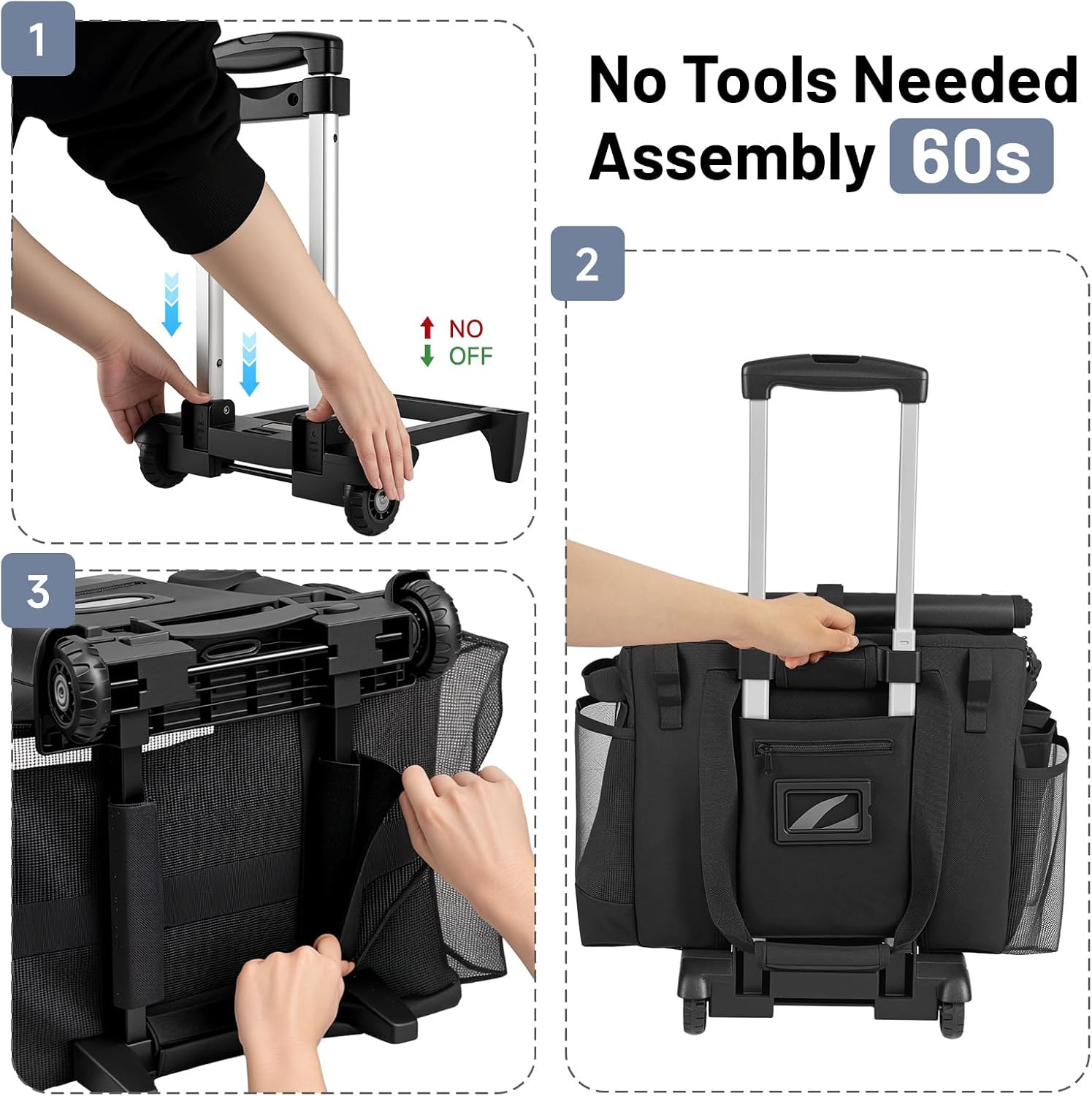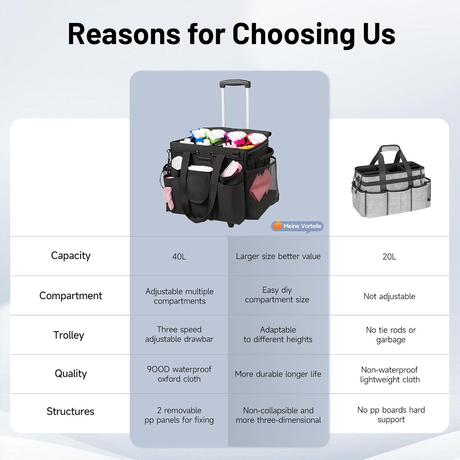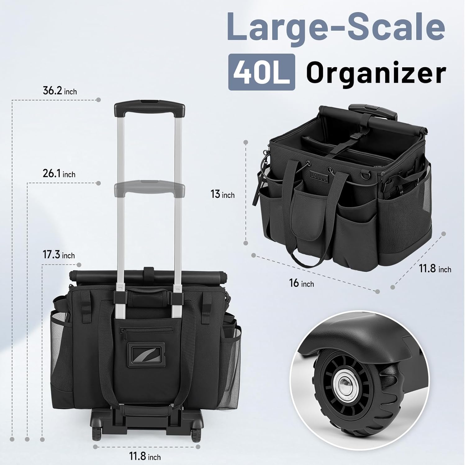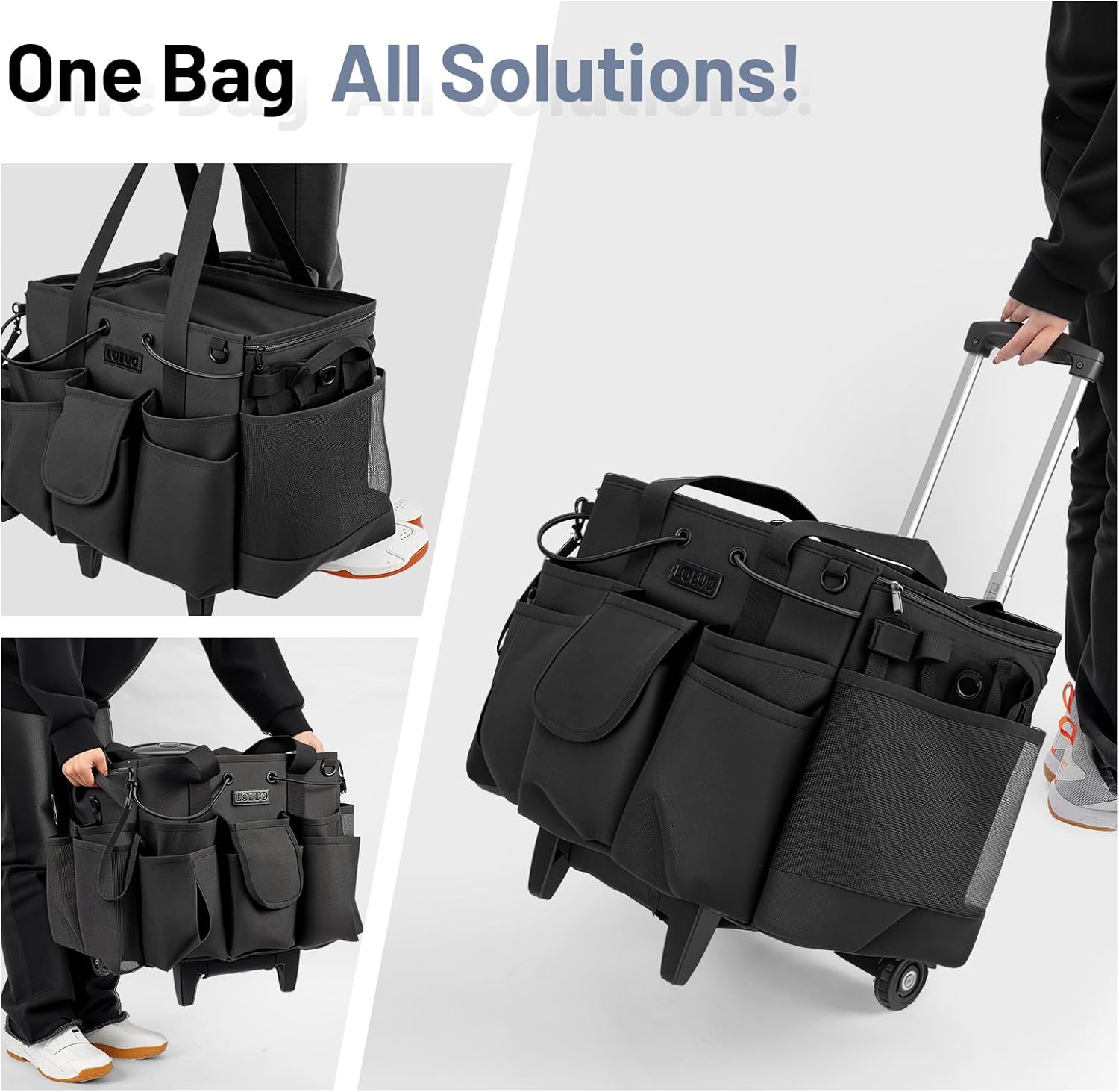 🌟 Ultimate Mobility Companion: Simplify your cleaning routine with the LOEUO rolling cleaning bag, featuring a detachable trolley and shoulder strap for versatility. Secure it with Velcro to prevent wobbling and easily switch to the shoulder strap when tackling stairs. Ideal for professionals and busy individuals, this bag offers portability and efficiency for cleaning wherever you go