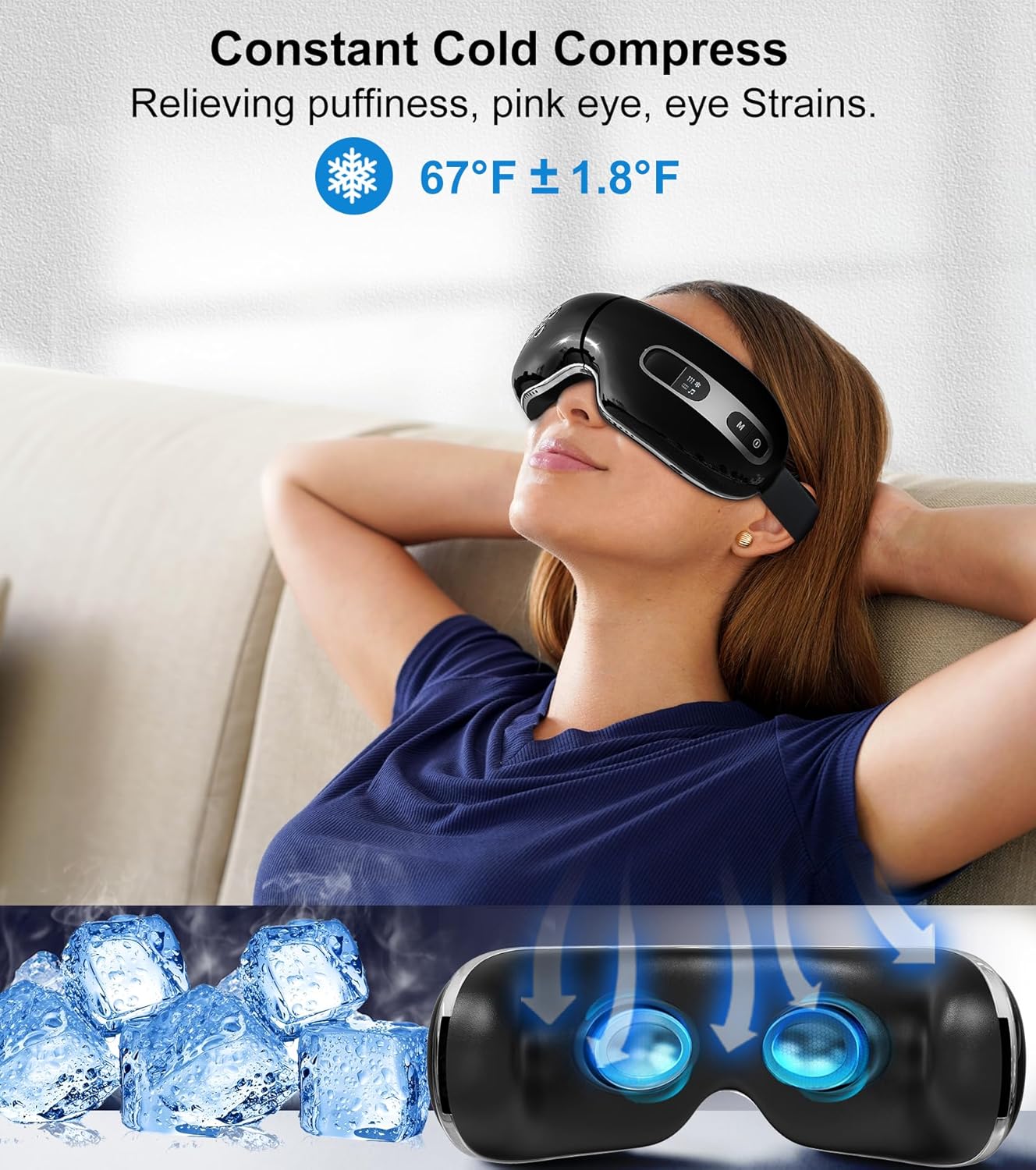 【Dual Heating & Cooling 】This eye massager uses advanced semiconductor technology to provide both warming (104℉±1.8℉) and cooling (67℉±1.8℉) effects, giving you greater flexibility in how you use it, and a comfortable and customizable massage experience.