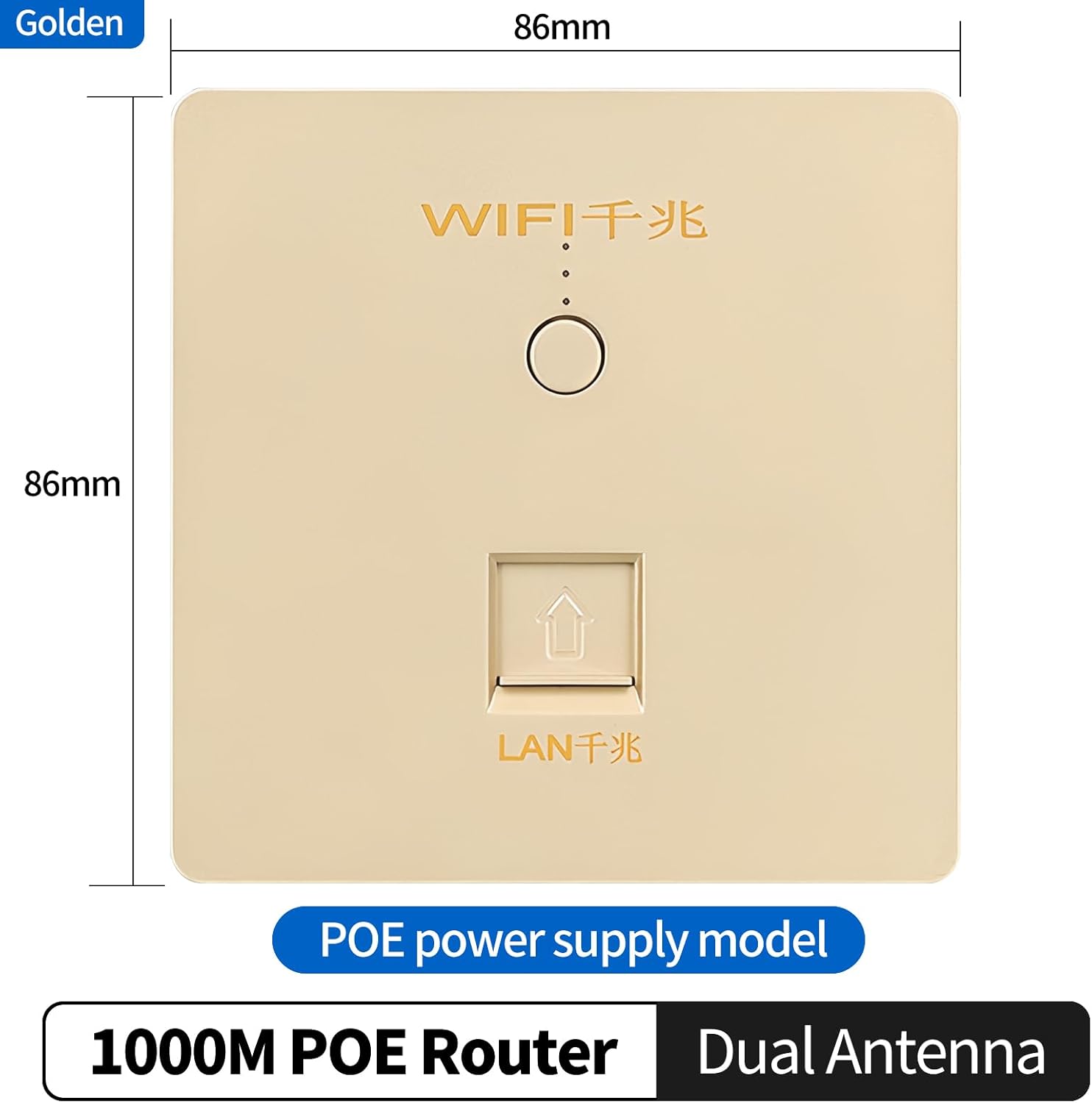 POE Power Supply WiFi Router 1000Mbps Wireless Repeater Extender Power AP Relay Smart 5G Ethernet in Wall Routers Embedded Panel (Golden)
