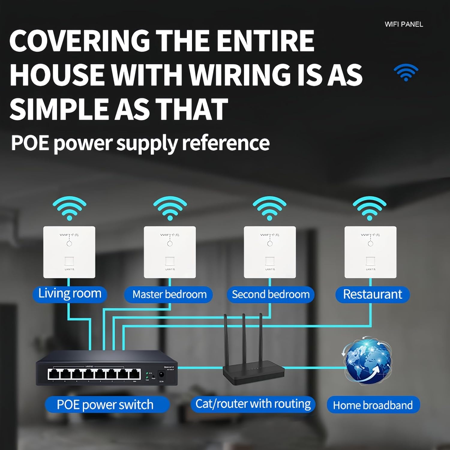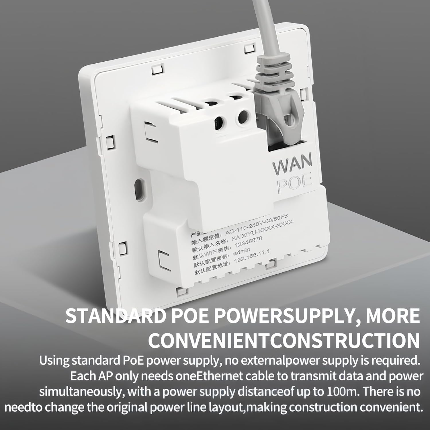 Experience seamless connectivity with this powerful POE 1000Mbps Embedded Wireless Router. This versatile device offers simultaneous wired and wireless connections, allowing you to connect computers via network cables while mobile devices access the internet through WiFi. The innovative standard POE power supply eliminates the need for external power sources – a single Ethernet cable handles both data and power transmission up to 330 feet. Perfect for whole-house coverage, this router enables strategic AP panel placement in multiple rooms, ensuring uniform WiFi signal distribution and eliminating dead zones. The smart management system maintains consistent WiFi signal names throughout your space, allowing for smooth roaming between areas. Installation is straightforward with no modifications needed to existing power layouts, making it an ideal solution for both simple and complex networking needs. The router’s dual functionality and advanced features make it a reliable choice for creating a robust, whole-house network infrastructure.
