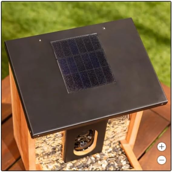 Bring your backyard bird watching into the digital age with this innovative Solar Smart Bird Feeder. This sophisticated feeder combines traditional bird feeding with modern technology, featuring a built-in 1080p HD WiFi camera that offers a 144-degree viewing angle to capture every delightful visitor. With its generous 3.5 lb capacity split between dual compartments, you can offer different types of seeds to attract a variety of birds. The sleek design includes a durable dark housing with natural wooden accents and a protective overhang to shield feed from weather. Powered by an integrated solar panel on top, this self-sufficient unit requires no battery changes or external power source. The sturdy perch provides birds with comfortable access to feed, while the camera lets you observe their behaviors through your connected device. Perfect for nature enthusiasts who want to monitor their feathered friends even when away from home. Note: Bird seed is not included with the feeder.