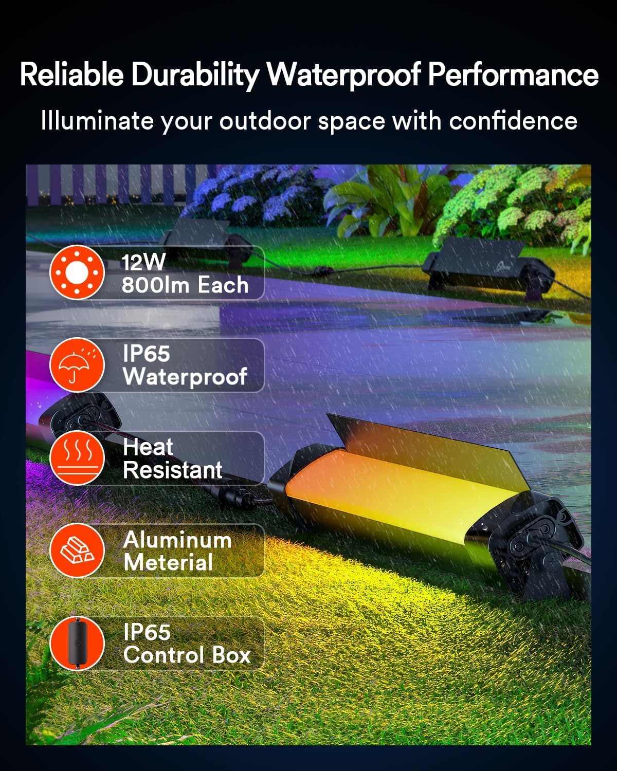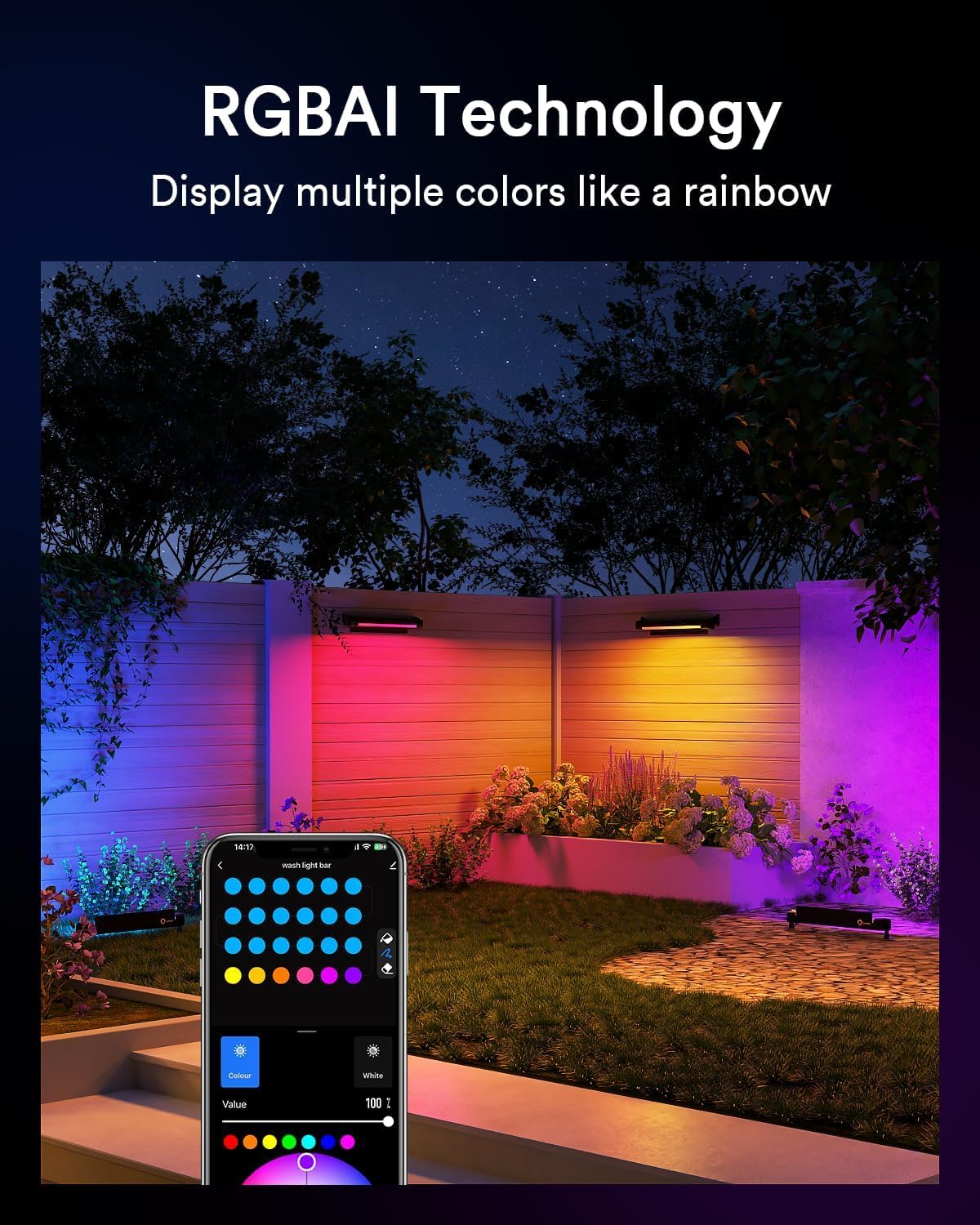 【Dynamic RGBAI Effect】Lumary RGBAI technology displays multiple colors simultaneously, each wall washer light is divided into 6 segments that can be controlled individually, offering countless design options, stunning light effects and extensive DIY funs. With Lumary RGBAI outdoor light bar, you’ll find more vivid lighting effects to brighten up your home
