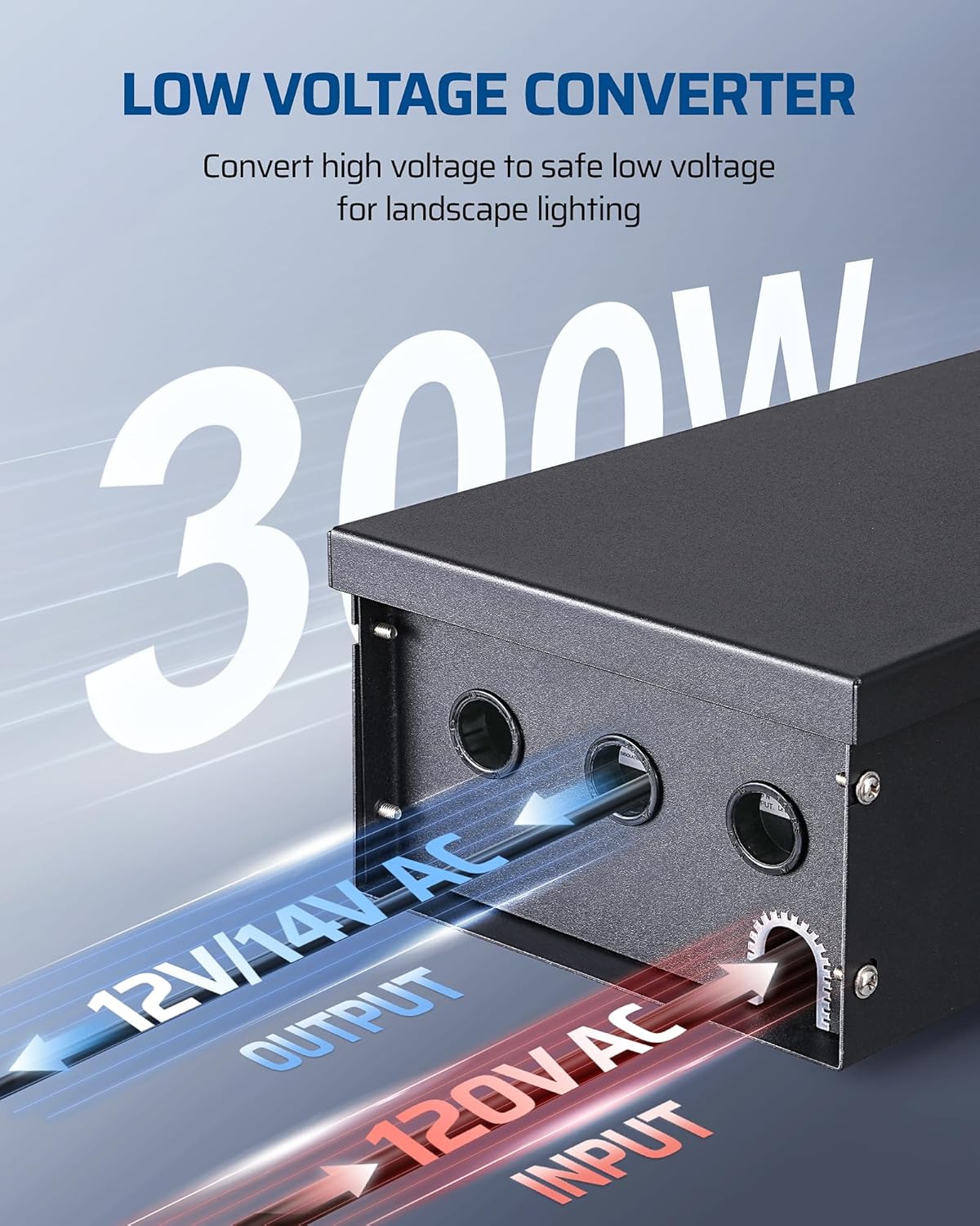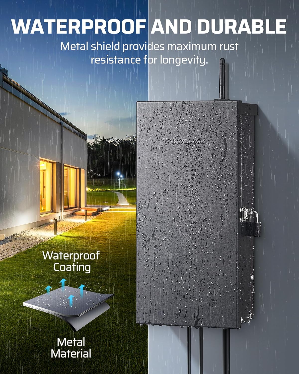 [Durable & Waterproof] The high-performance metal casing is sturdy and waterproof, shields transformers from rain, snow, dust, and wear, ensuring long-lasting durability; ideal for both indoor and outdoor installations, including garages, patios, gardens, walkways