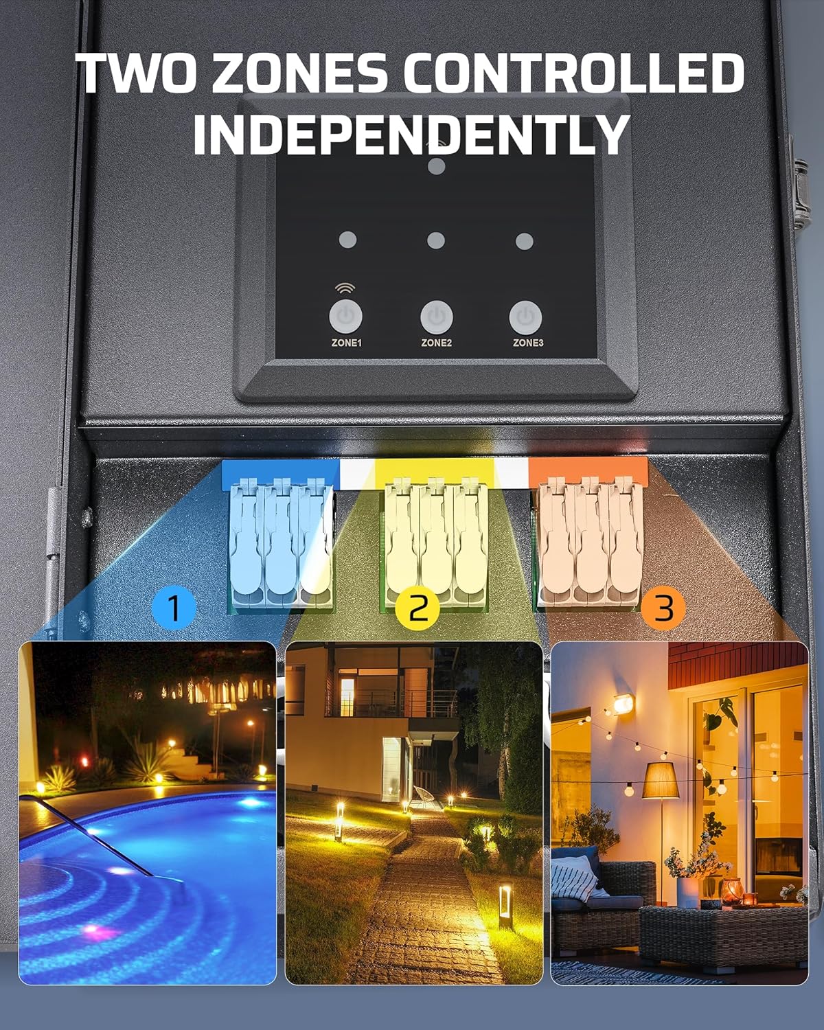 DEWENW[120V to 12/14V] With maximum power of 300W, this transformer safely converts 120V household electricity to low 12/14V output, ensuring safe and reliable operation for outdoor lighting needs; perfect for yard light, pathway light, garden light, and other low-voltage lighting systemILS Low Voltage Transformer 3 Zone WIFI
