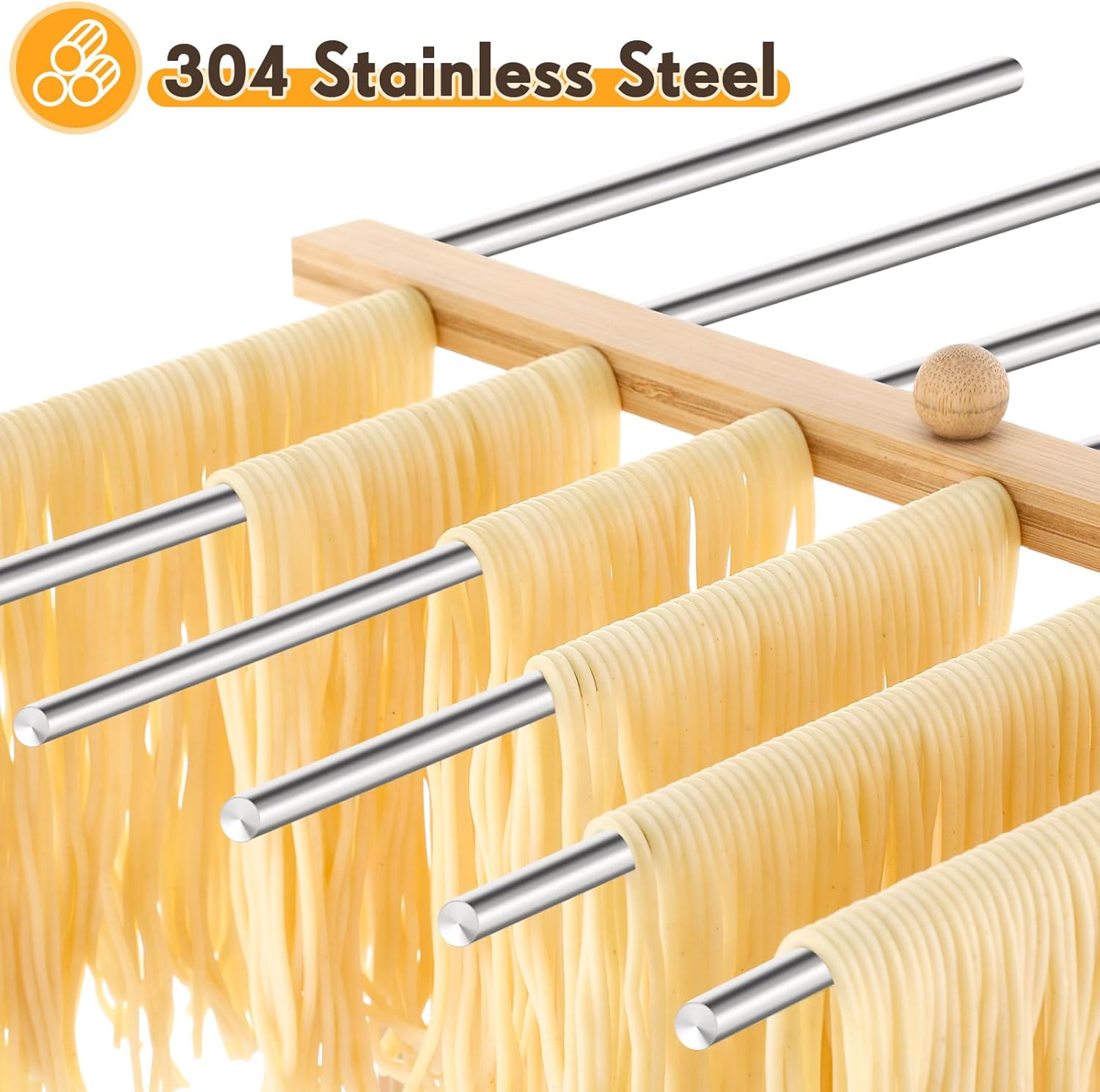 Product Included: you will receive 1 pasta drying rack, the drying rack is made of 304 stainless steel and wood base, it will not easily tip over when drying pasta, the stainless steel bars are easier to clean, not easy to rust and damage