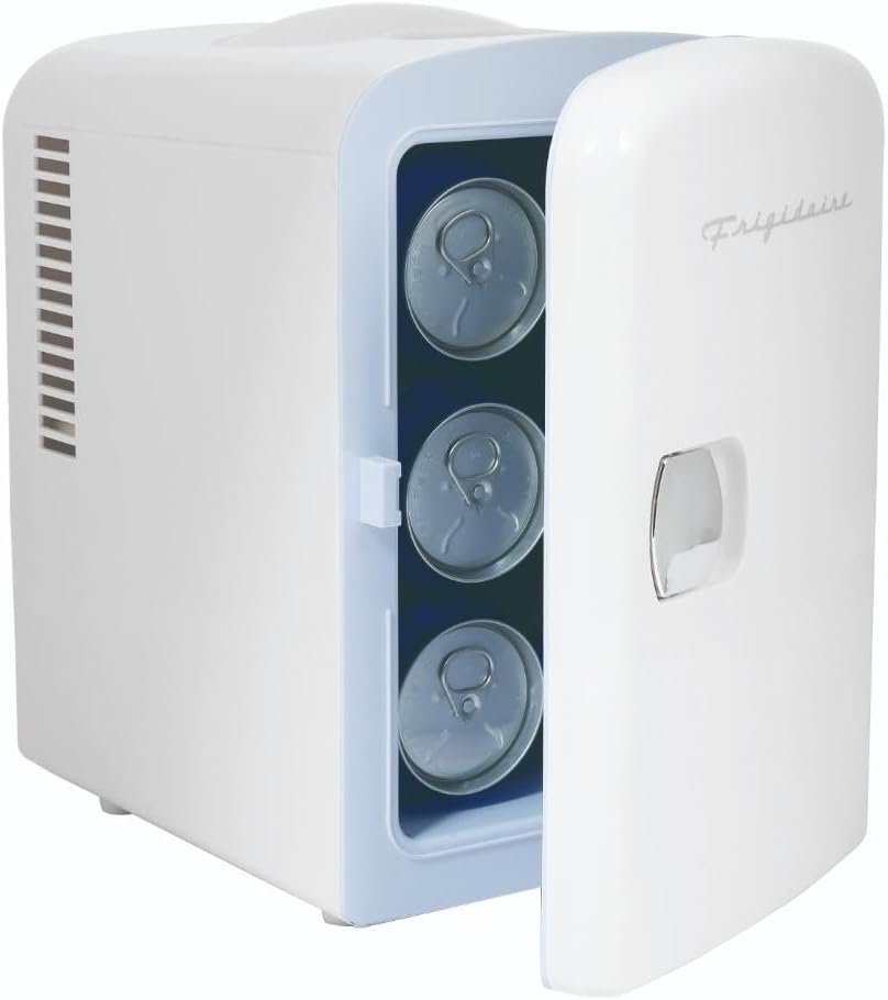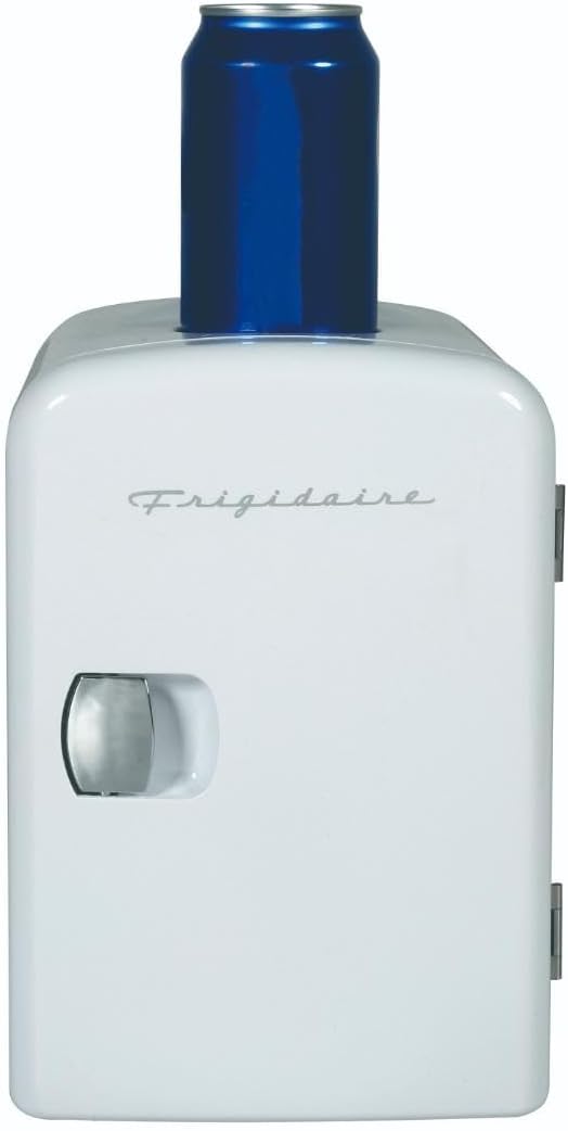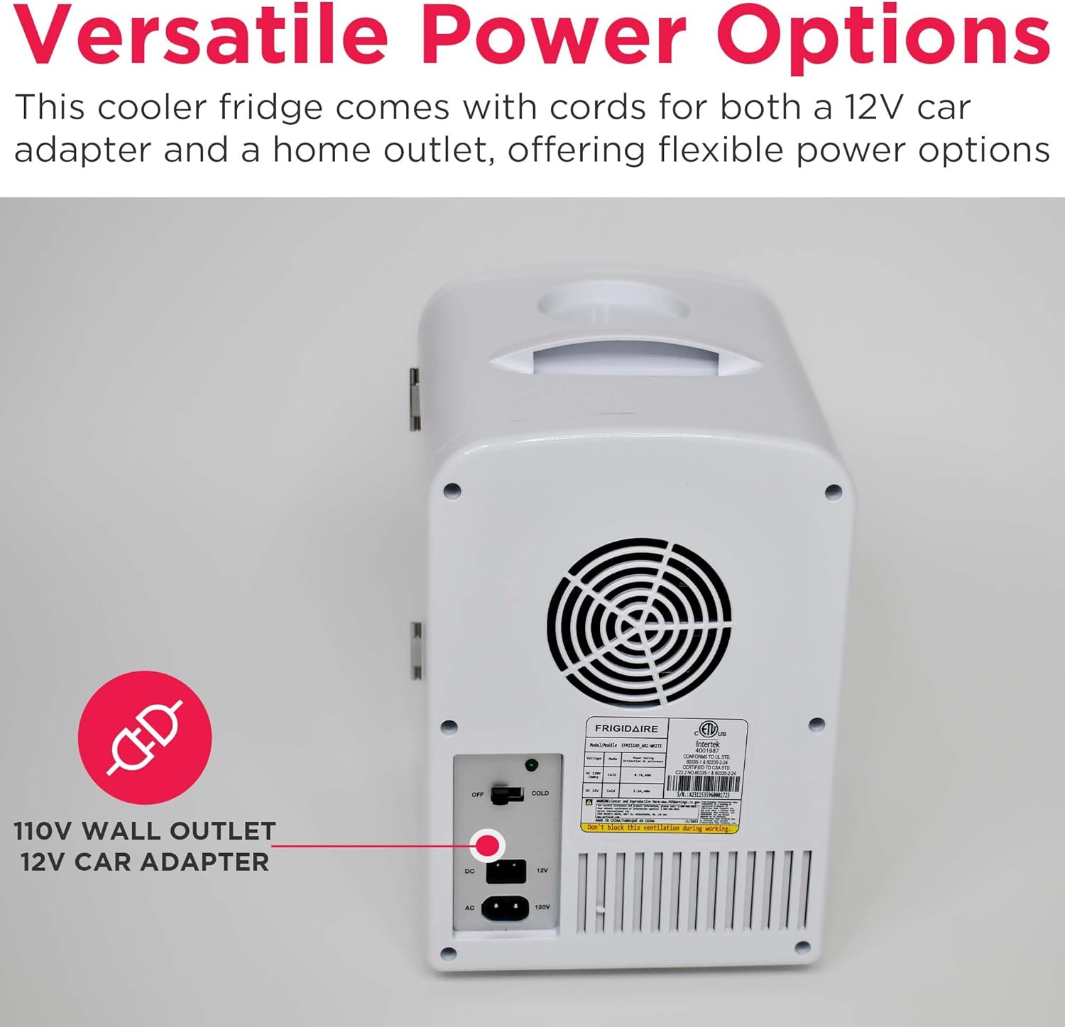 Frigidaire Mini Portable Compact Personal Fridge Cooler, 4 Liter Capacity Chills Six 12 oz Cans, 100% Freon-Free & Eco Friendly, Includes Plugs for Home Outlet & 12V Car Charger – White