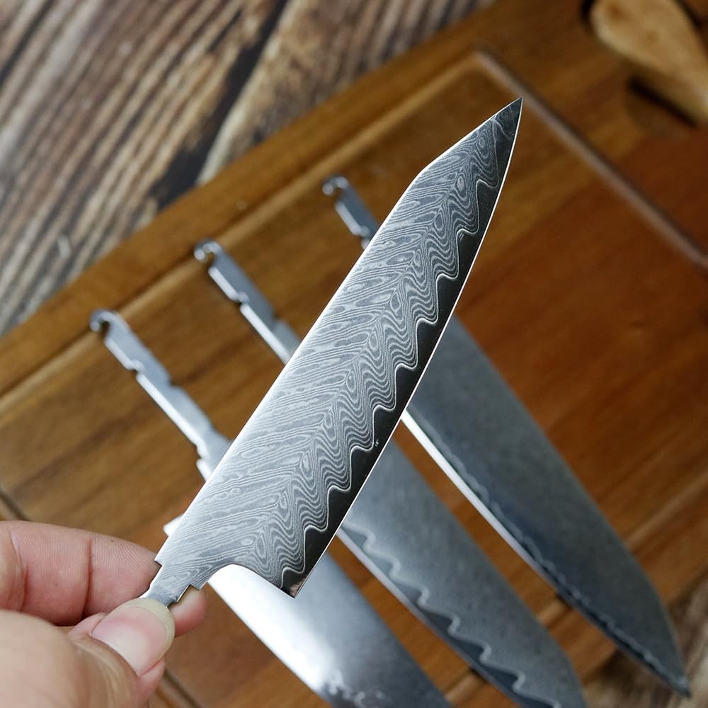 High quality steel: The blades are made of high-quality VG10 steel core layer, with 33 layers of 304/316L stainless steel on both sides as protective layers, combining a total of 67 layers of steel. The combination of hardness and softness allows the blade to have high overall hardness while also having good toughness.