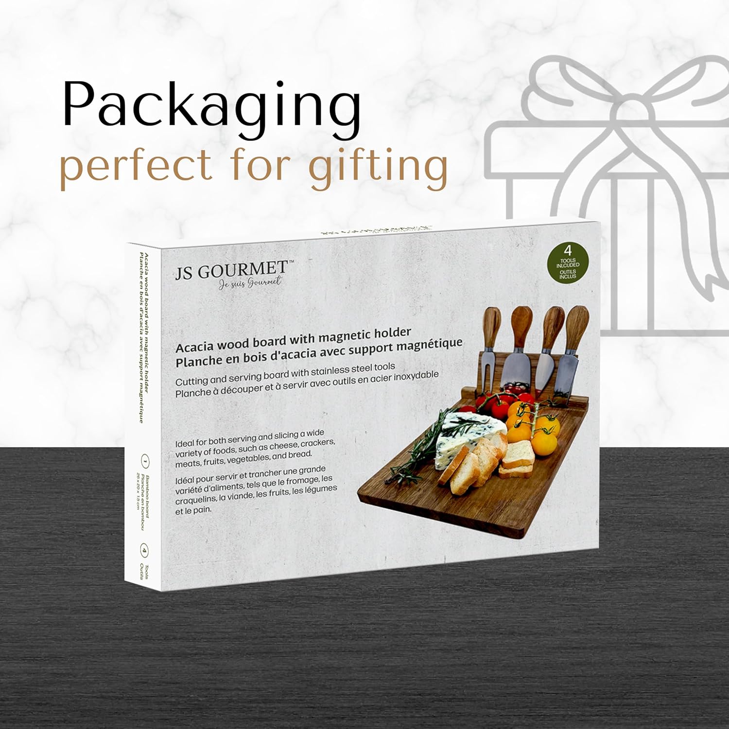𝐌𝐚𝐭𝐞𝐫𝐢𝐚𝐥: Introducing JS Gourmet’s Cheeseboard, crafted from 100% acacia wood, featuring an integrated Magnetic Knife Holder and 4 premium Stainless Steel Cheese Tools.