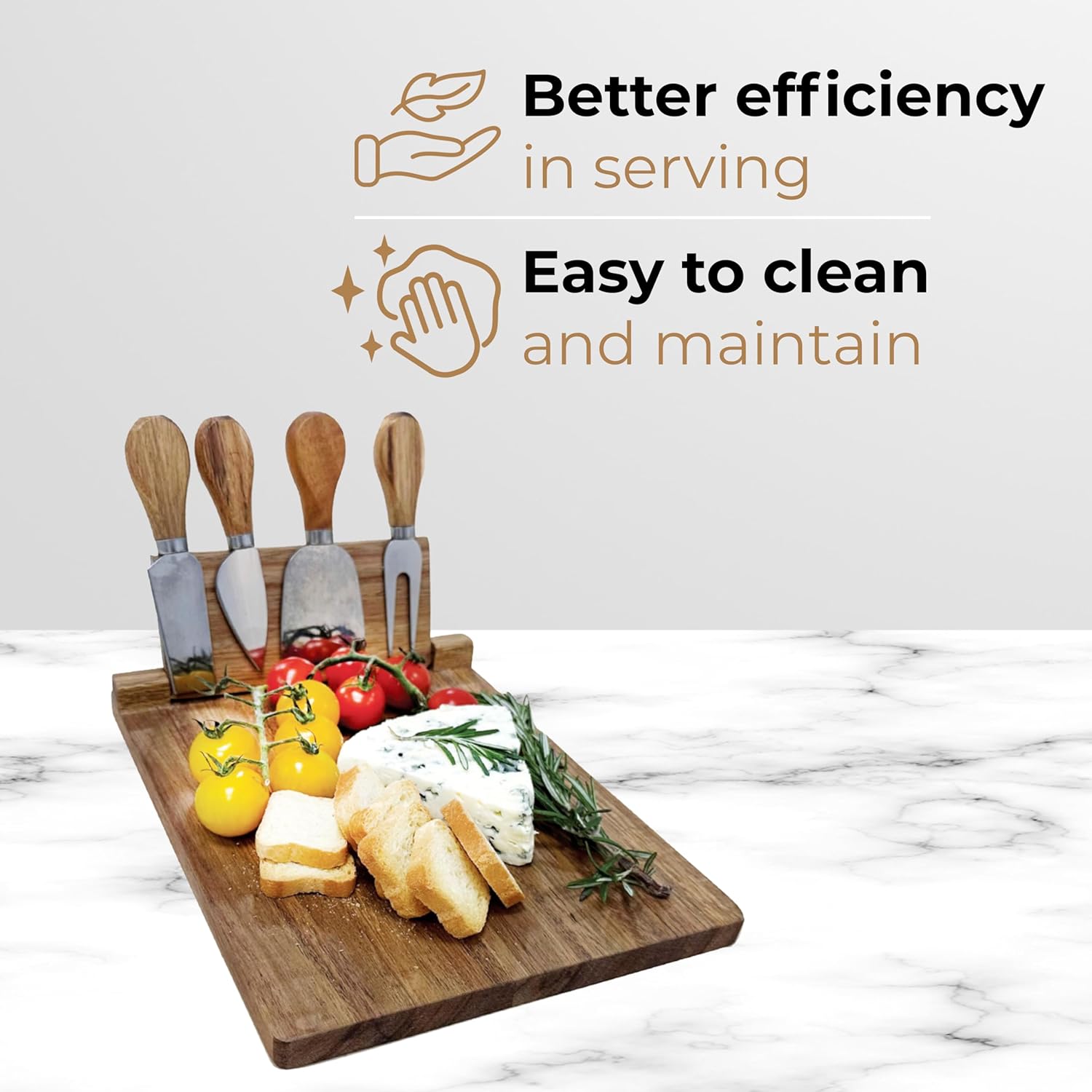 𝐒𝐢𝐦𝐩𝐥𝐞 𝐌𝐚𝐢𝐧𝐭𝐞𝐧𝐚𝐧𝐜𝐞: Easily clean Wooden Charcuterie Board with warm, soapy water or a damp cloth—avoid dishwasher use or soaking.