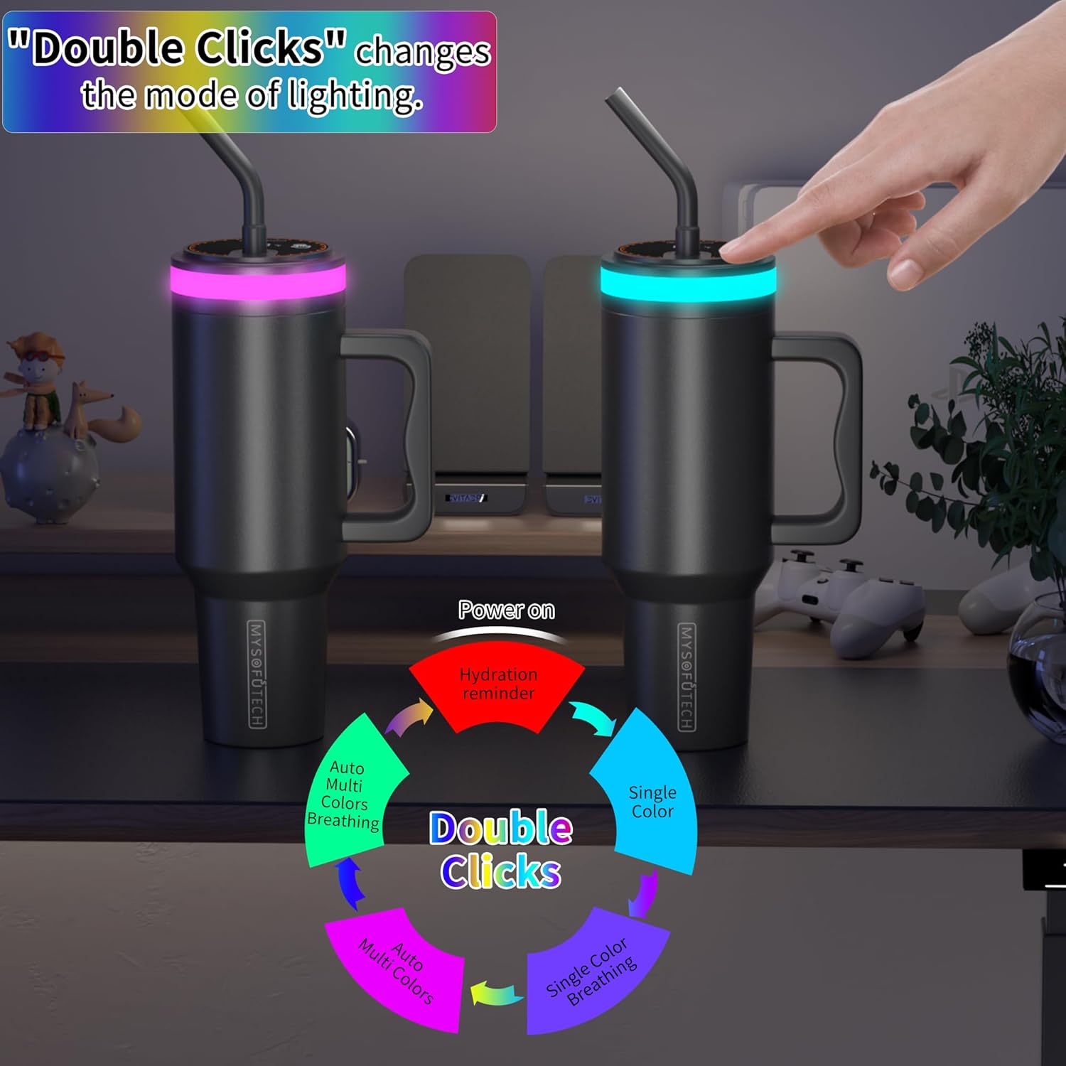 Upgrade your hydration routine with the Mood Lighting Tumbler—Where tech meets tranquility.