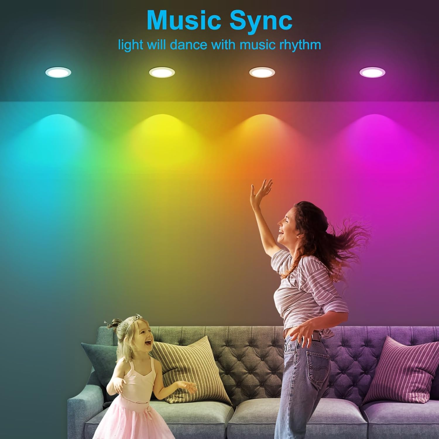 【Music Sync】The lights will flash synchronously with the music rhythm via APP, you can add your favorite music to the list.