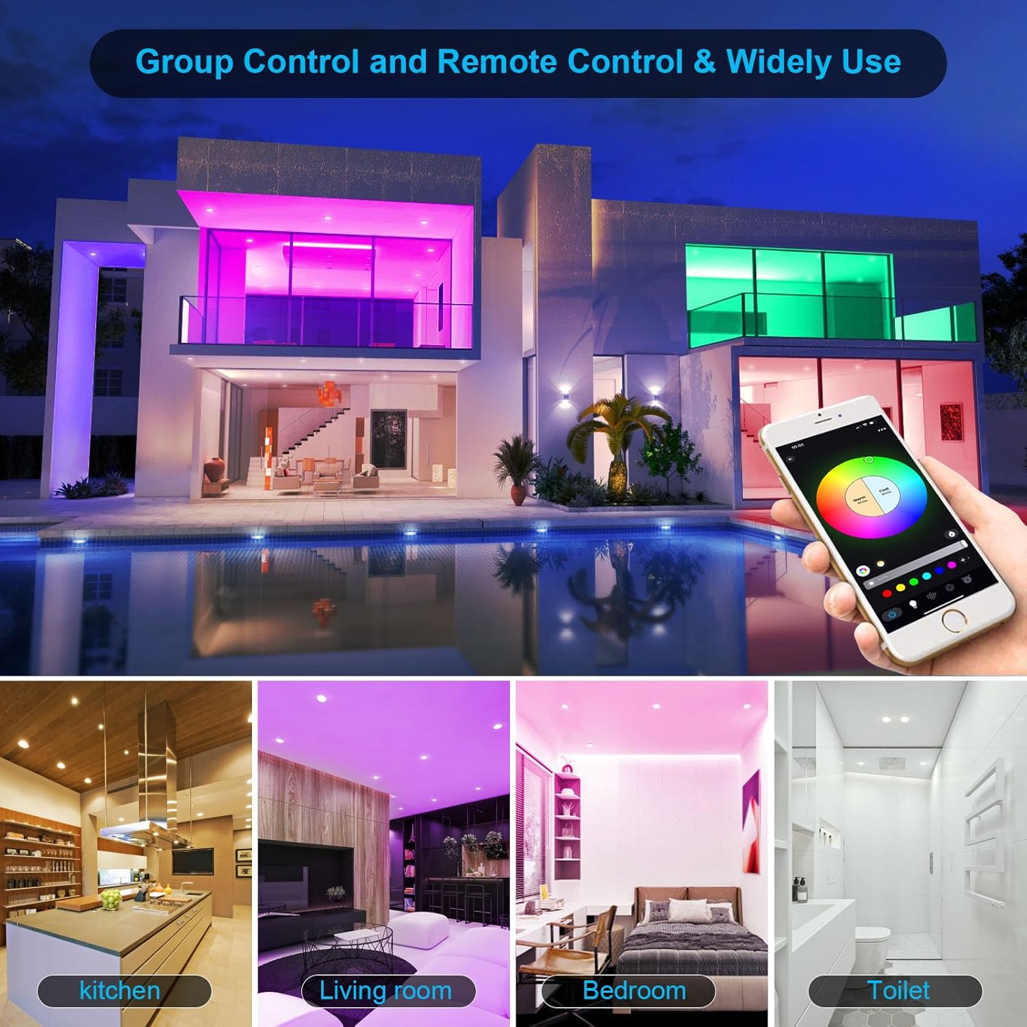 【Group Control】Easily create different groups of INDARUN downlights in your home, such as bedroom, living room, kitchen, hallway, etc; Synchronize control all your lights via APP to avoid the hassle of adjusting individual lights.