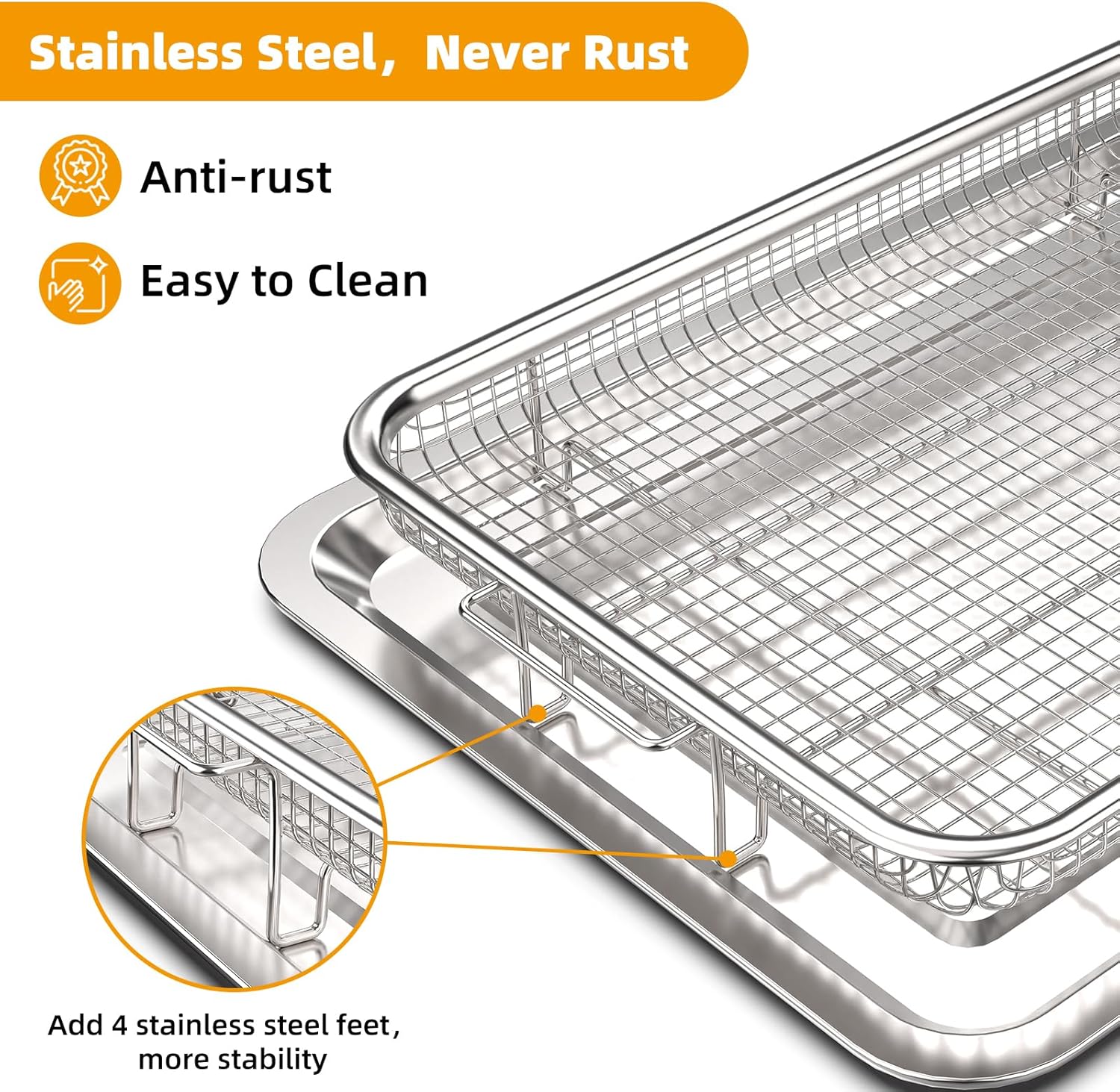 【2 Set Air Fryer Basket】- Coming with crisper tray and air fyrer basket, the mesh can be used for making french fried,bacon, chicken wings , etc.Fryer tray is also a perfect baking tray, suitable for savory baking, biscuits, bread, cookies, cakes, brownies.