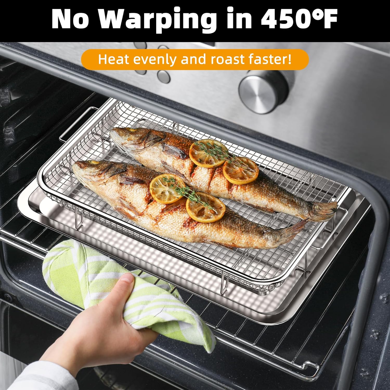 【Eat Healthier With Less Oil】- Oven fryer and bakeware set with nonstick coating eliminates the need for adding butter or fats; food lifts off effortlessly without sticking; you save up to 70% fewer calories from fat vs. cooking in a deep fryer.