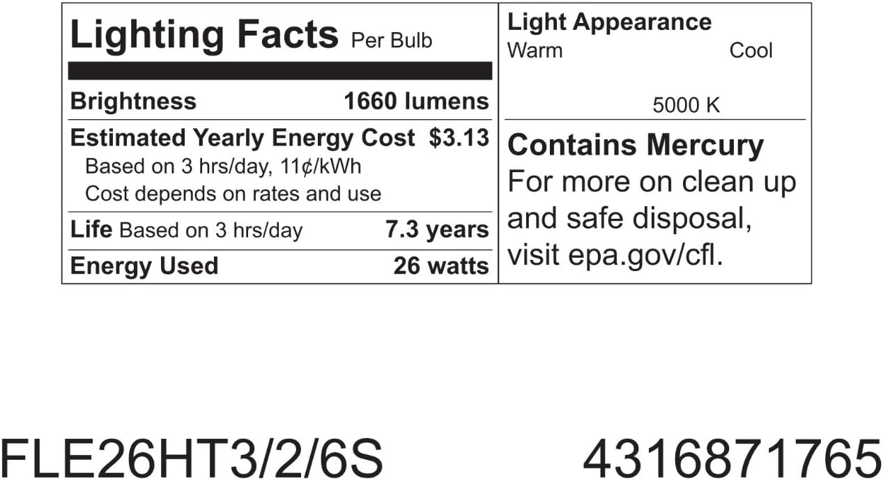 Light output 1660 Lumens-consumes 26 watts-equivalent to 100 Watts