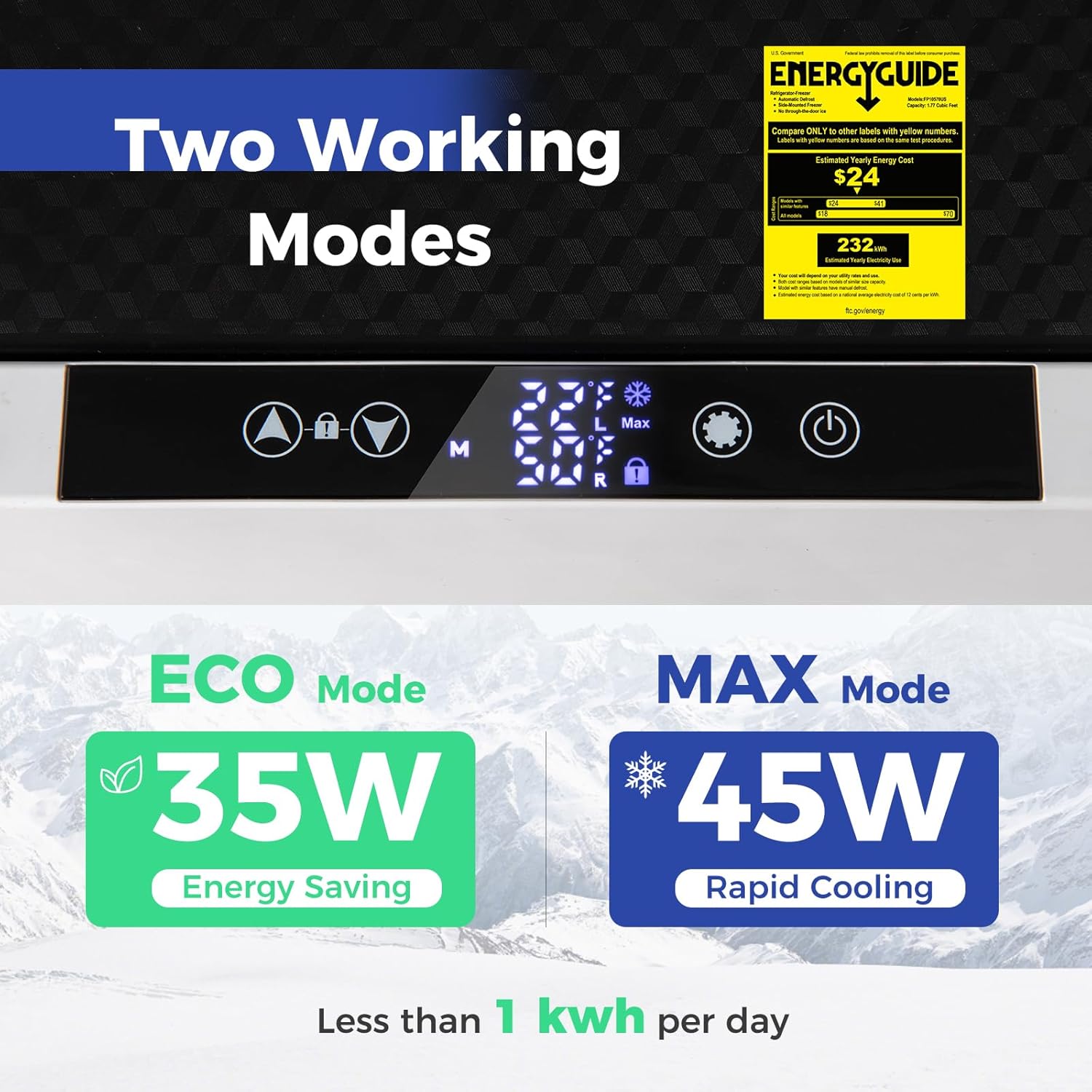 ️ [Fast Cooling & Low Energy Consumption] This 12V car refrigerator uses a powerful compressor with stable performance and 30° anti-shake feature for rapid cooling from 77℉ to 32℉ in just 10 minutes. You can switch between the MAX and ECO modes for faster cooling or energy-saving. The energy consumption is less than 1 KWH per day in ECO mode.