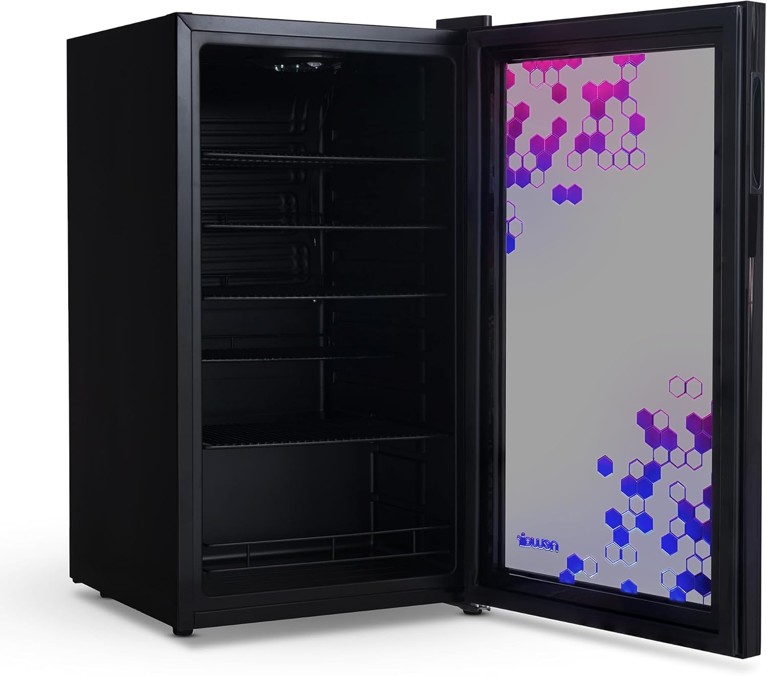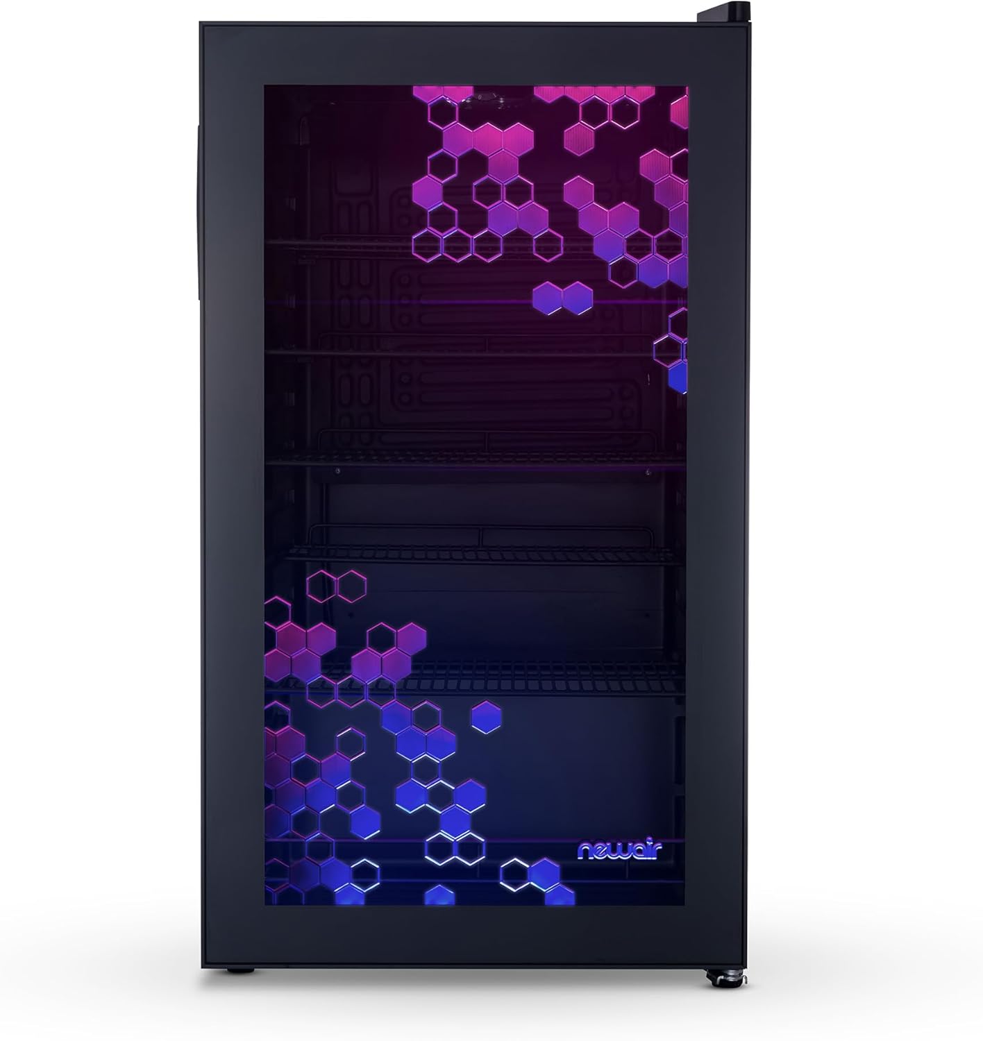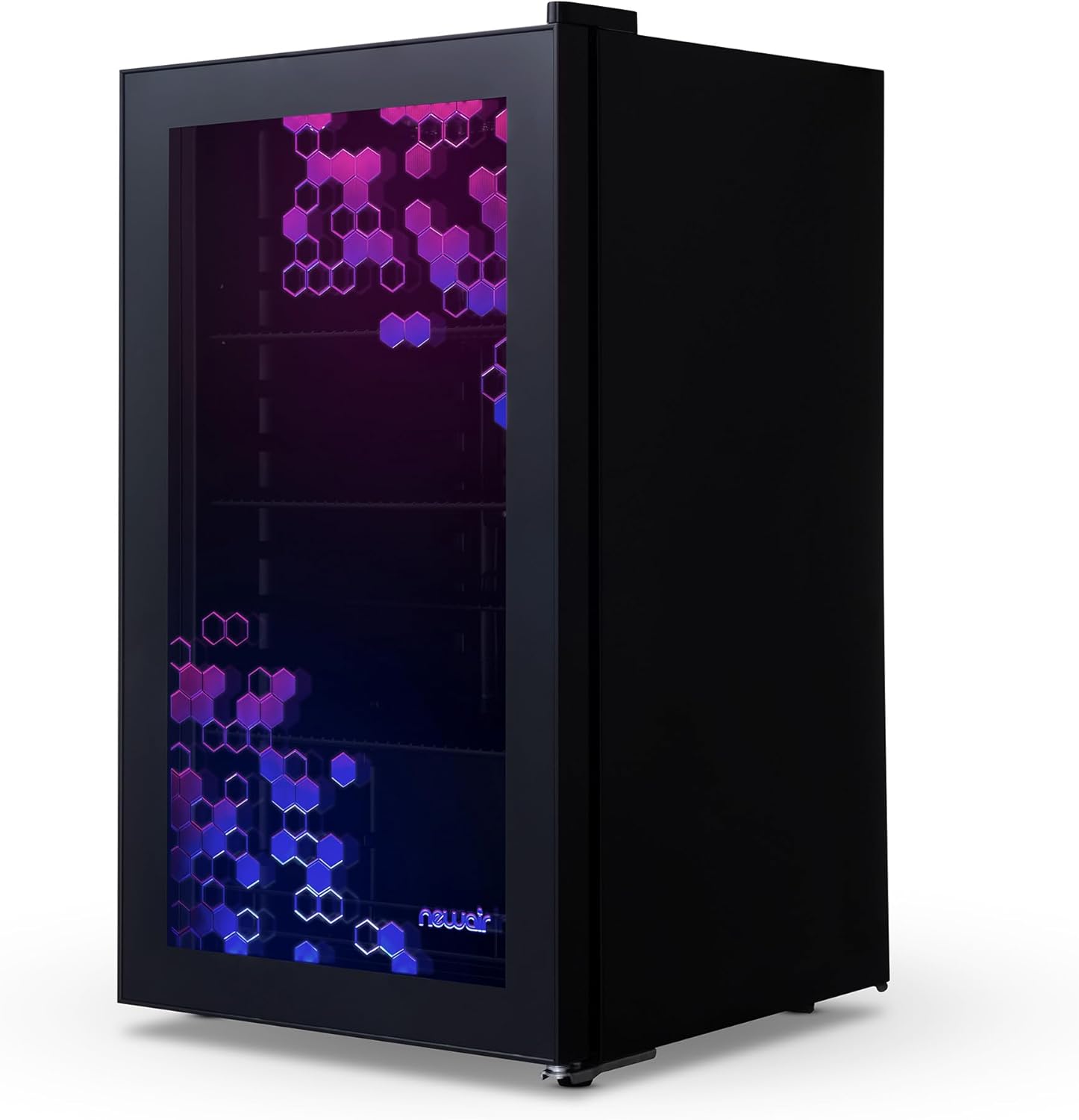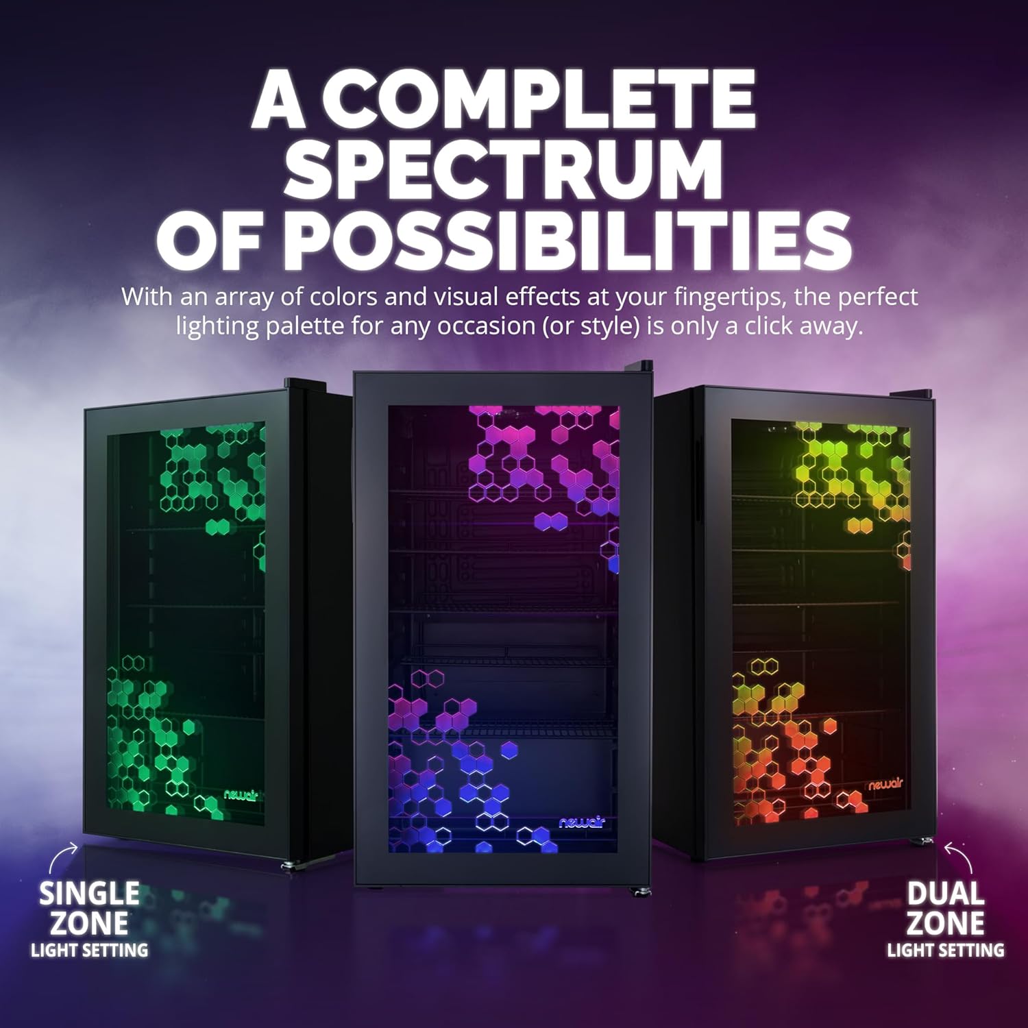 [FULLY-ADJUSTABLE RGB LED ARRAY x 2] The Newair Prismatic Series utilizes integrated LED (RGB) arrays and refractory design elements to illuminate the door in a fun and versatile way.