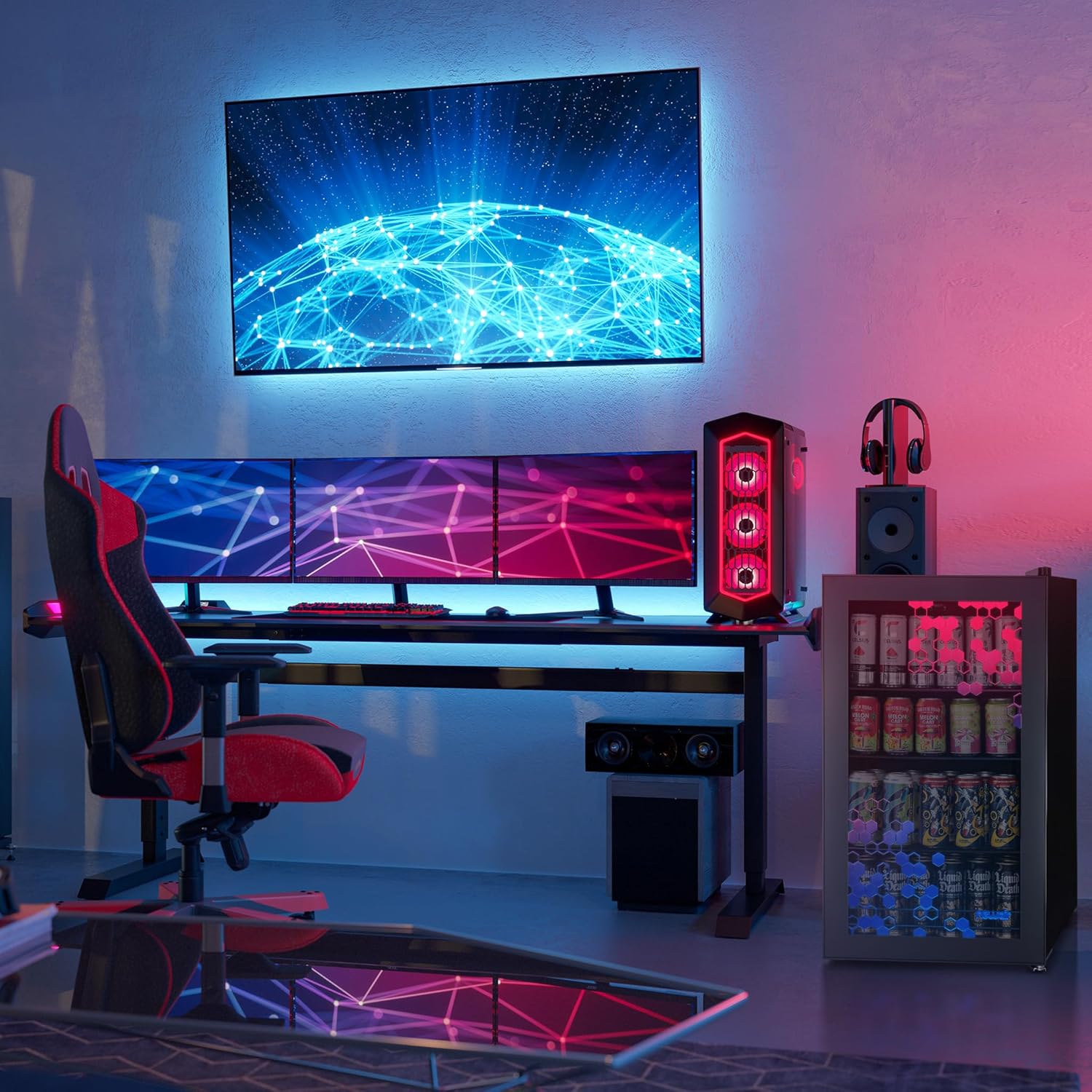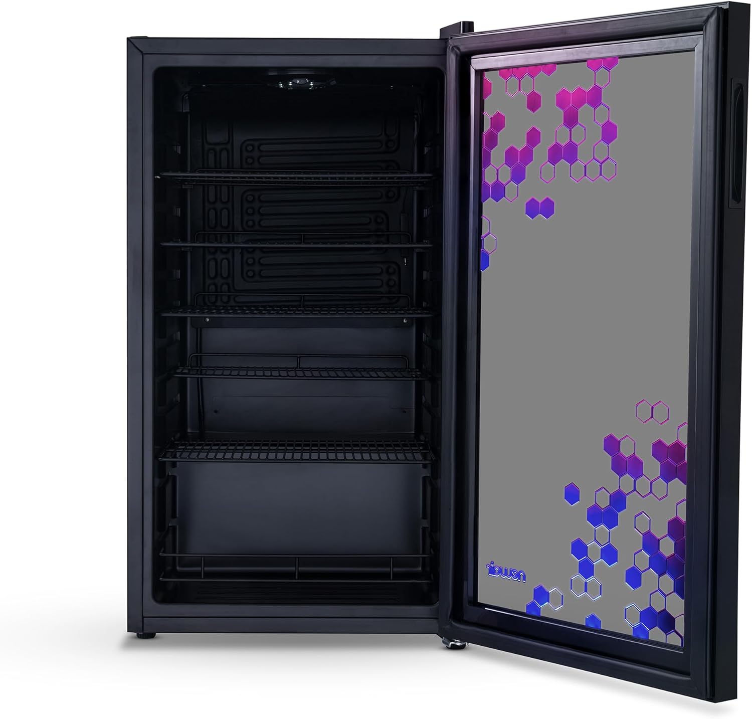 Say goodbye to unnecessary trips to the kitchen. With adjustable shelves that can hold up to 126 12-oz cans, you can keep your favorite beverages, snacks and more right at your fingertips. Thanks to the dual-pane glass door, you can swiftly scan the contents without disrupting your flow. Stay focused, stay refreshed, and stay in the game without missing a beat.